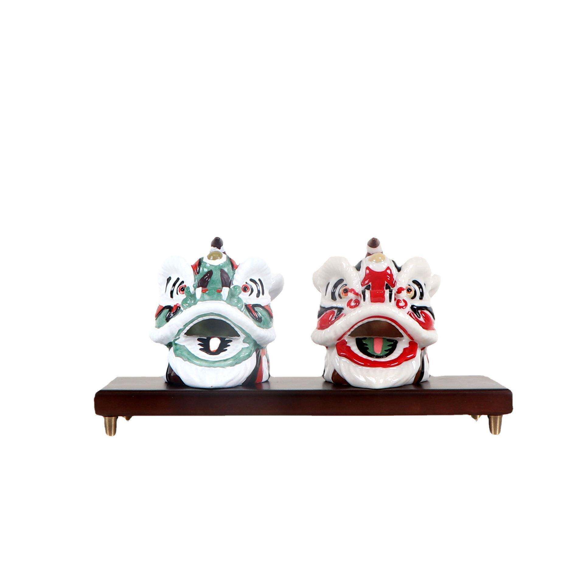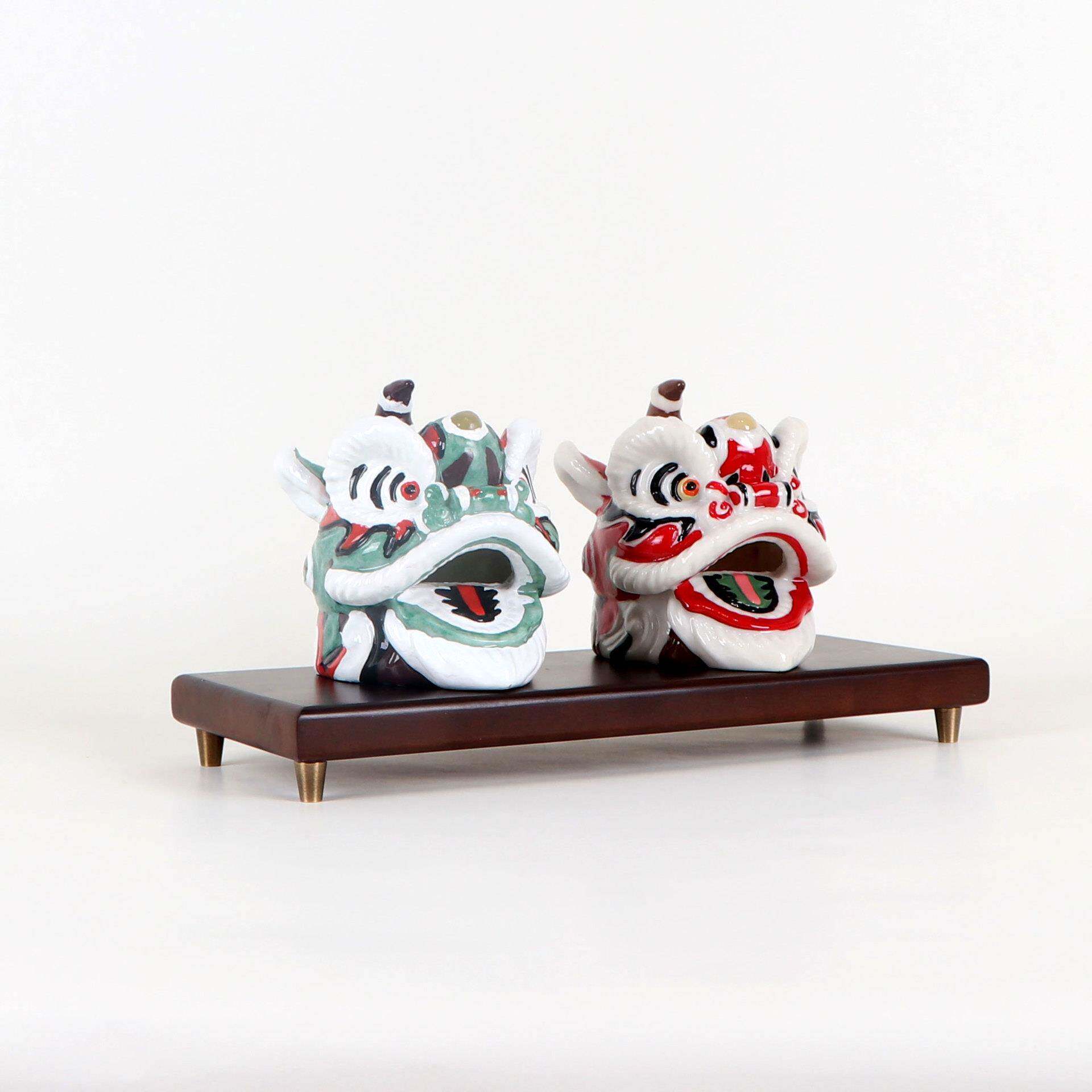 新中式树脂狮子头摆件设样板房间客厅茶几案台电视柜现代软装饰品