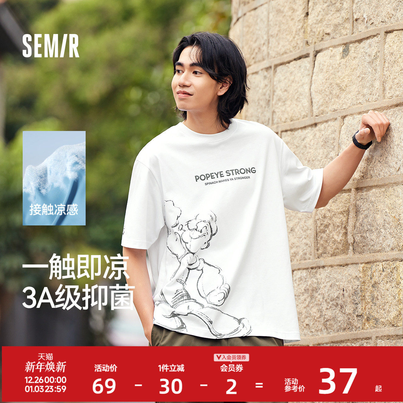 森马大力水手联名短袖T恤男宽松印花情侣装夏季凉感抑菌上衣潮流