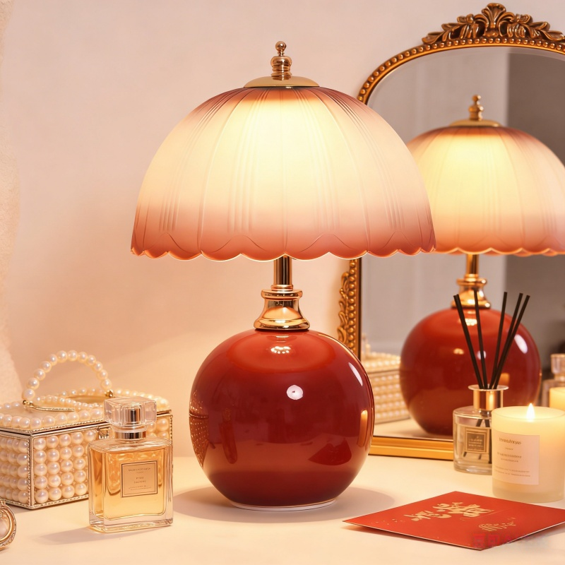 奶油风台灯创意高级感轻奢装饰台灯卧室床头柜主卧温馨结婚氛围灯