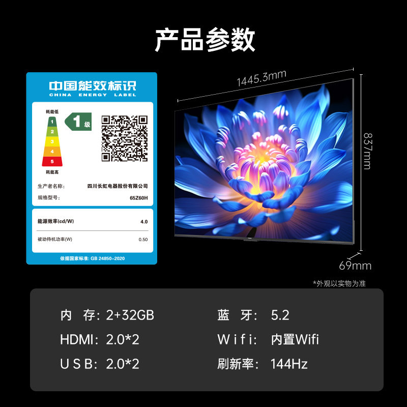 长虹欧宝丽65Z60H高清65英寸家用智能液晶电视机官方正品政府补贴