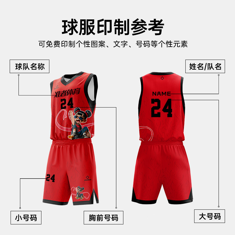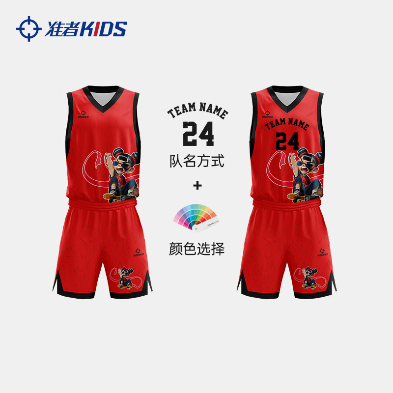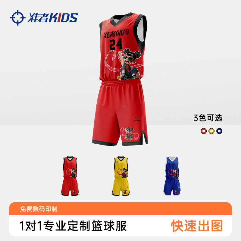 准者童装儿童篮球服定制哪吒红色国潮球衣表演班服团队服10A抗菌