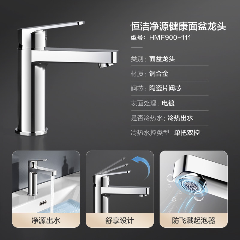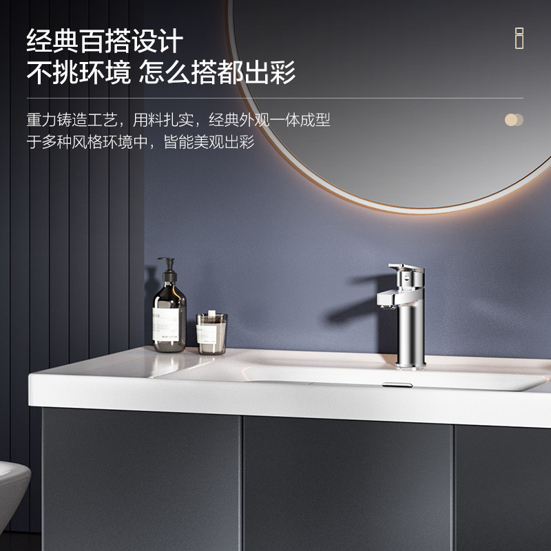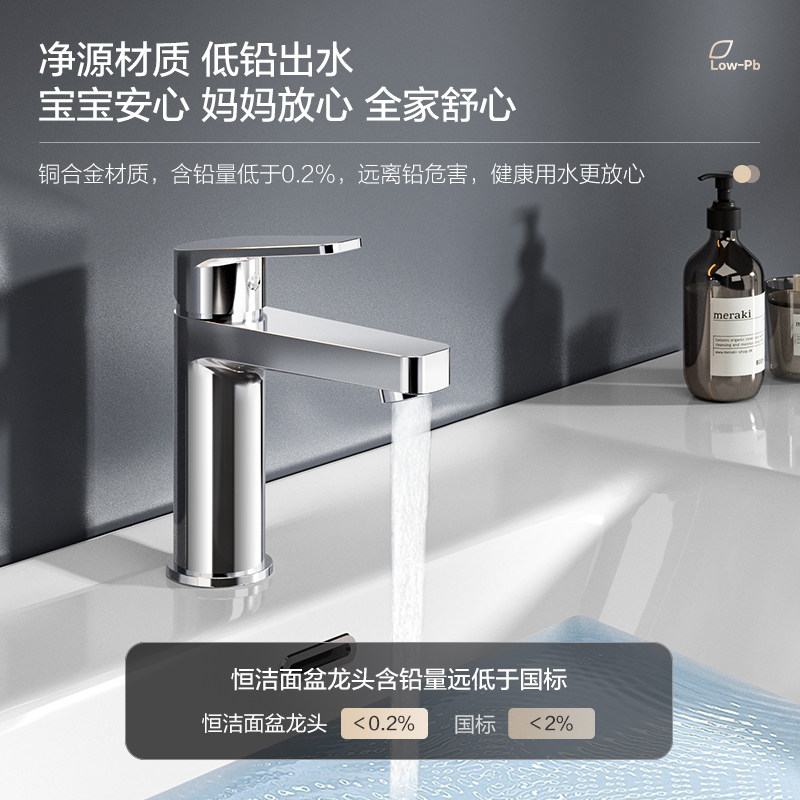 恒洁卫浴面盆冷热不锈钢台盆水龙头浴室柜增压龙头