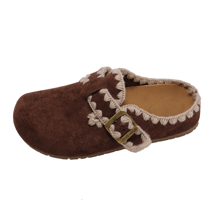 品牌厚底增高勃肯鞋加绒包头半拖女秋冬季2025外穿棉拖鞋保暖棉鞋
