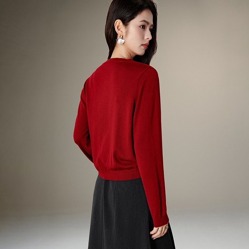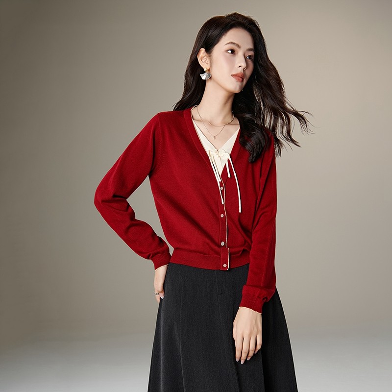 新款羊毛开衫外套女针织打底衫V领2025年春季羊绒外搭短款毛衣女