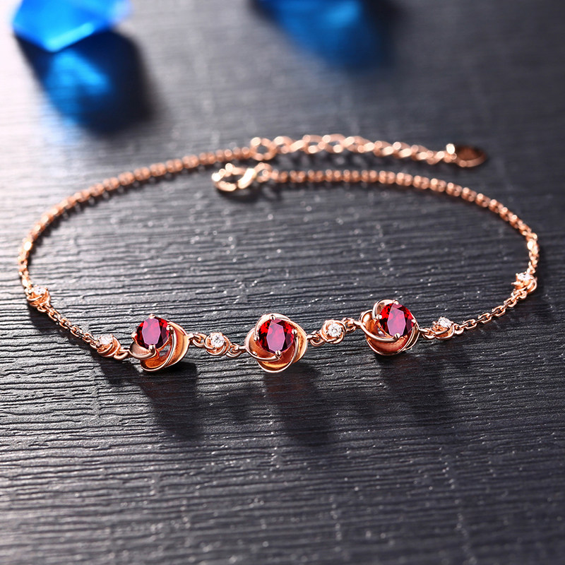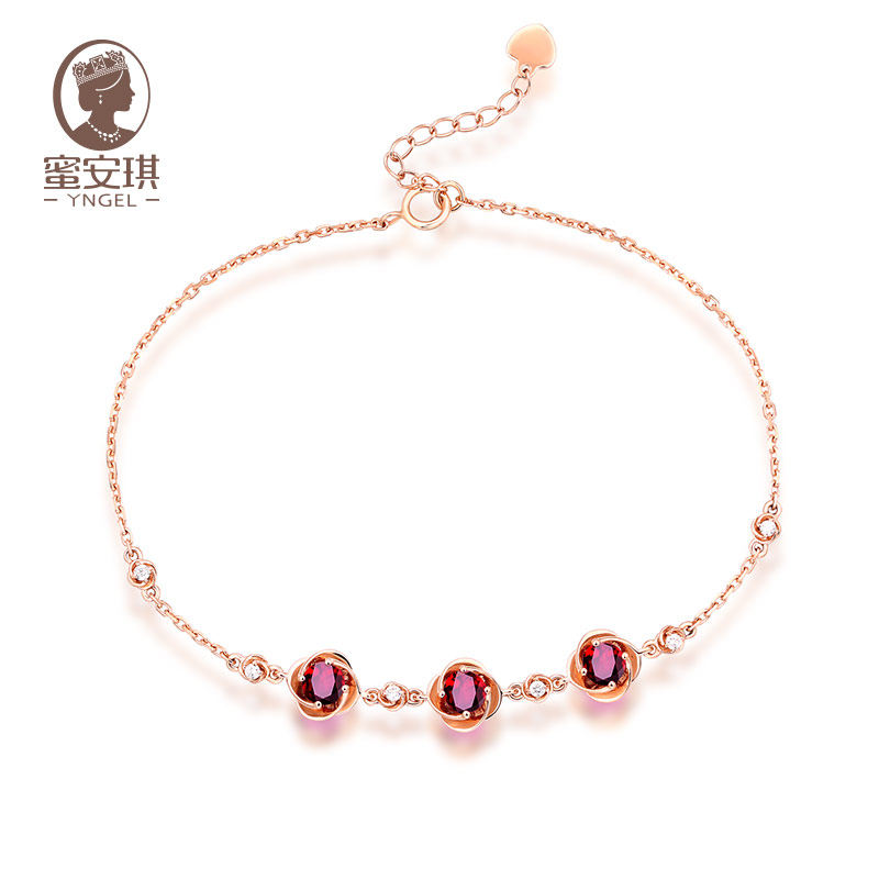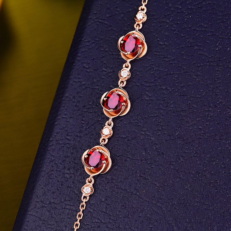 蜜安琪 1克拉天然鸽血红宝石手链女 18k金镶嵌钻石 轻奢彩宝定制