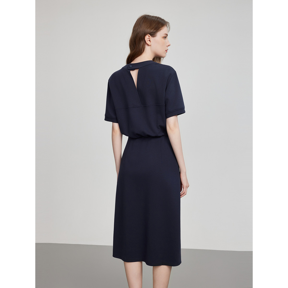 COCOBELLA简约气质黑色收腰极简风连衣裙女优雅短袖长裙FR3033-2