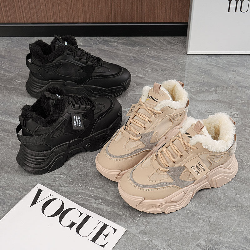 明星同款高帮加绒老爹鞋女2025新款冬季加厚雪地靴保暖运动大棉鞋
