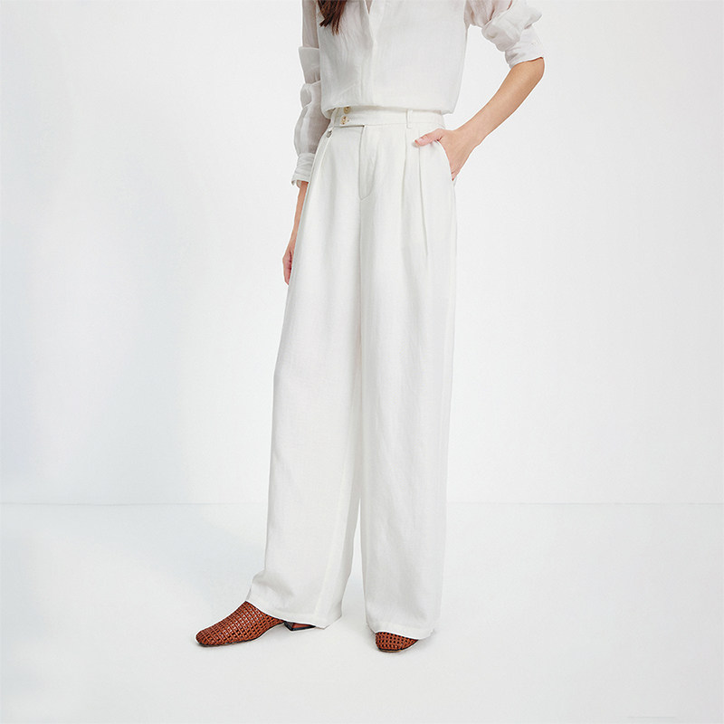 Navigare意大利小帆船老钱风白色休闲裤女2026春夏百搭显瘦阔腿裤