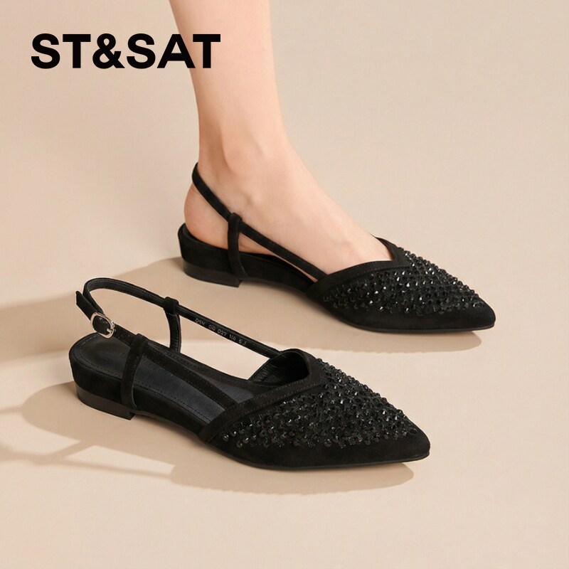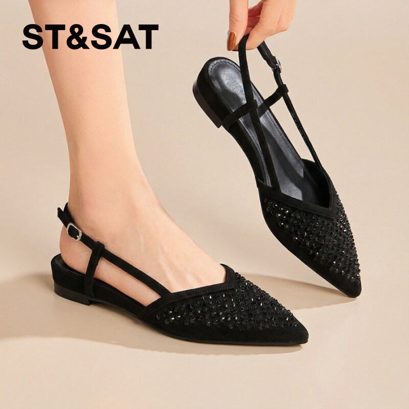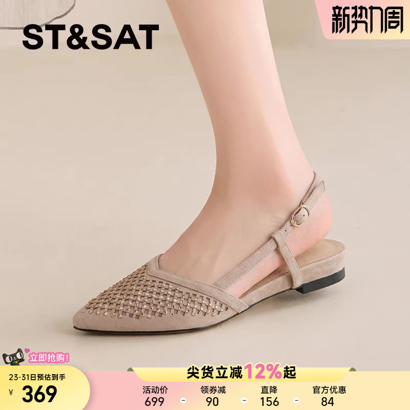 【羊皮】星期六包头浅口单鞋女款2026春夏铆钉配裙子一字带凉鞋子