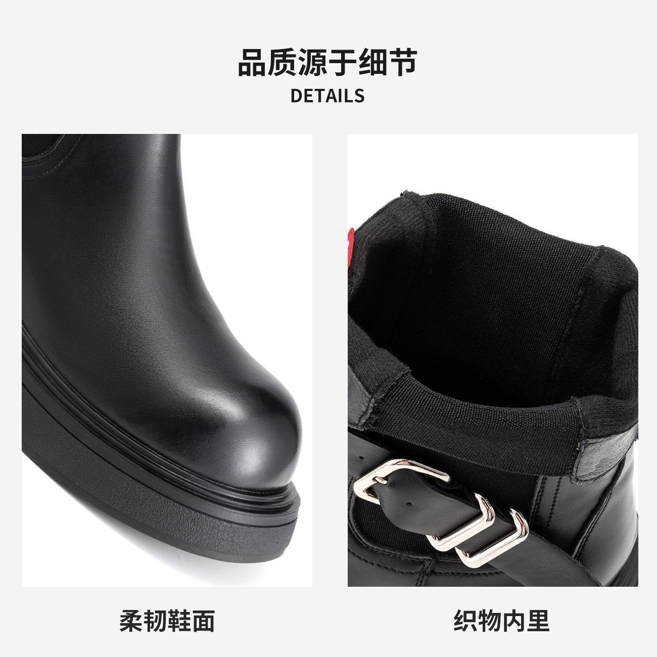 奥康 女鞋冬季厚底英伦风烟筒靴皮带扣机车增高显瘦时装靴