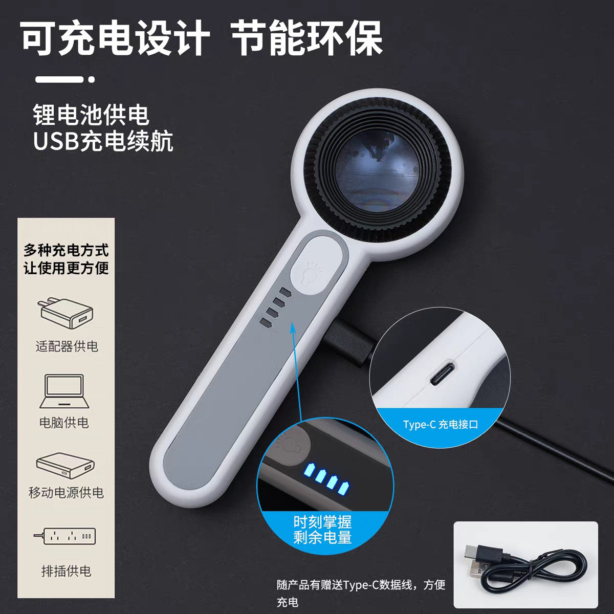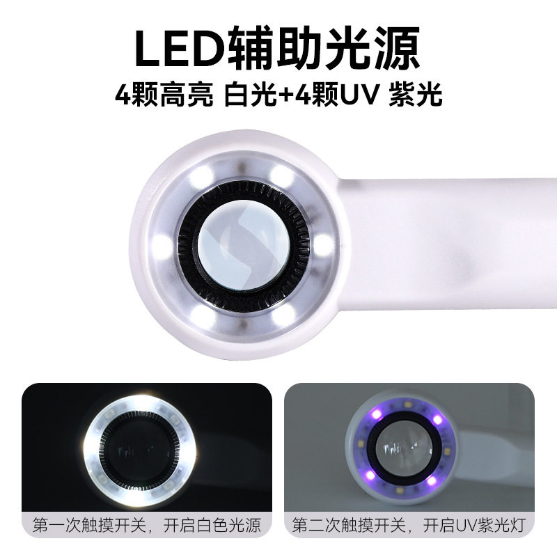 USB充电60倍高清放大镜带LED紫灯邮票古玩鉴定电子芯片电路板维修