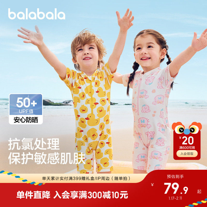 巴拉巴拉儿童泳衣男童女童宝宝连分体泳装防晒速干泡温泉潮泳衣裤
