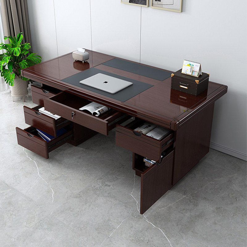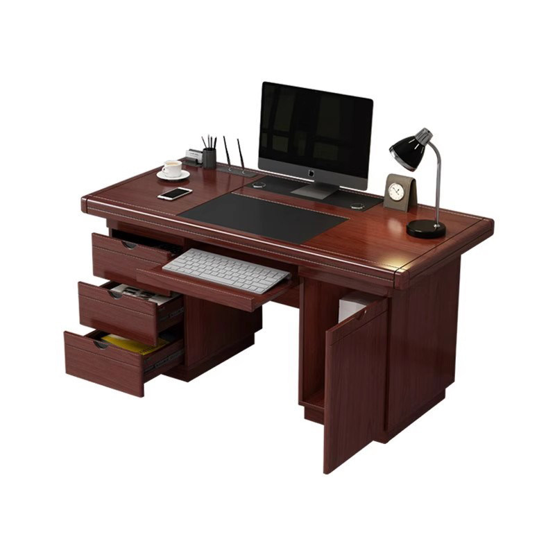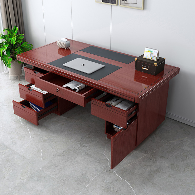 现代中式办公桌单人办公室职员台式电脑桌家用书桌带锁工作桌可放