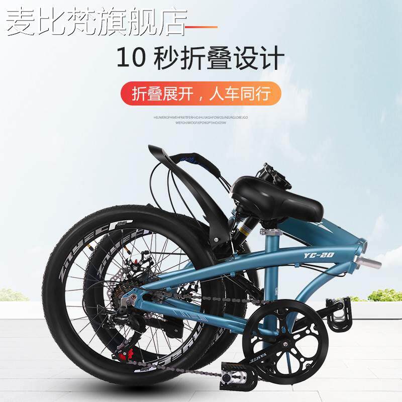 麦比梵铝合金折叠自 行 车 男女成人学生超轻便捷迷你小轮20寸休闲脚踏单 车摆件饰品垫垫盖布