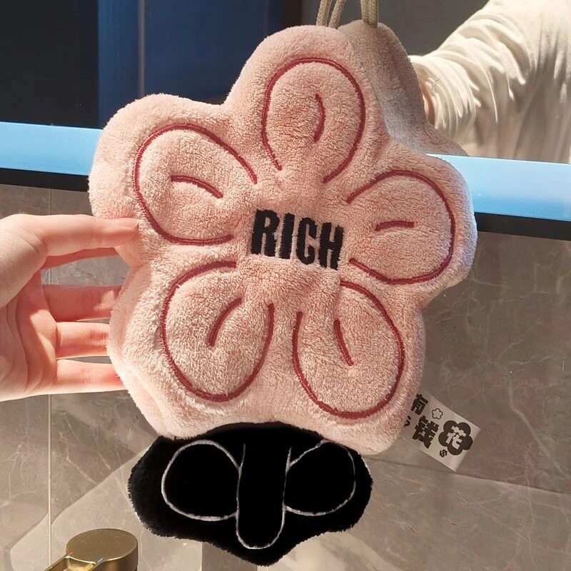 有钱花擦手巾挂式可爱超强吸水加厚毛巾珊瑚绒手帕无异味