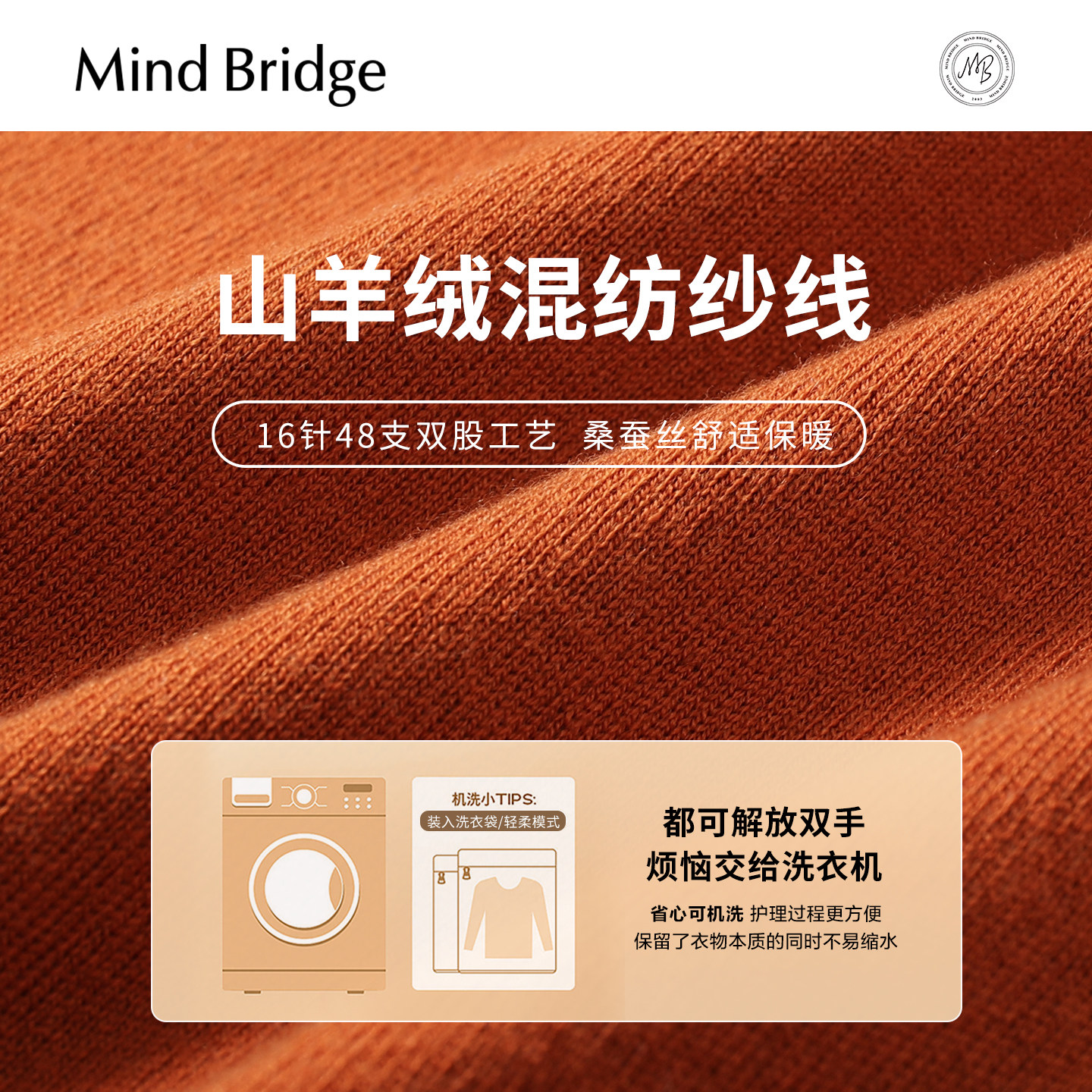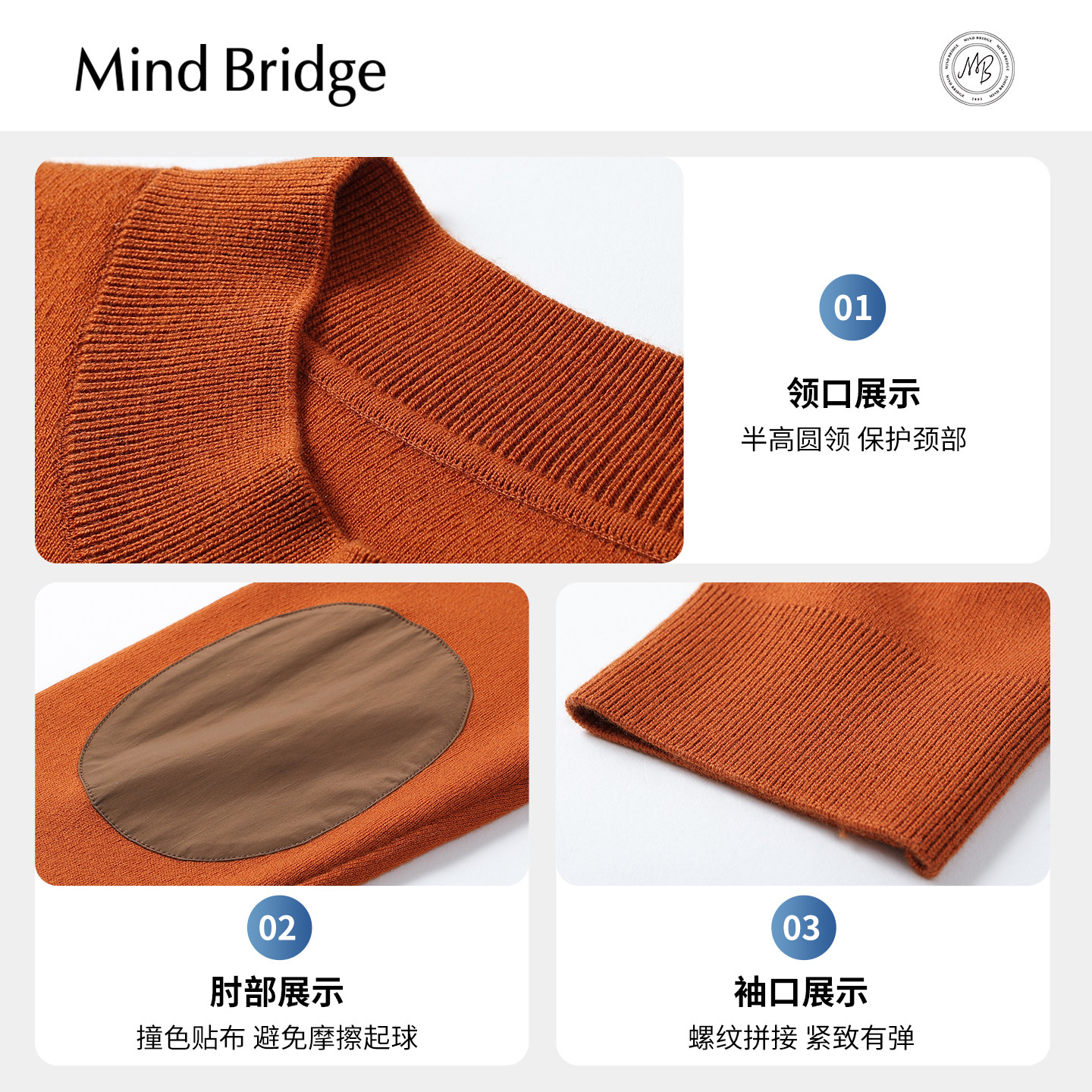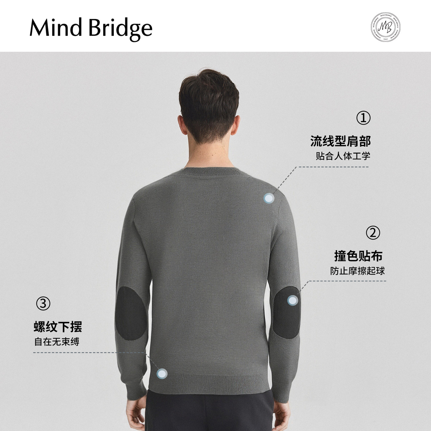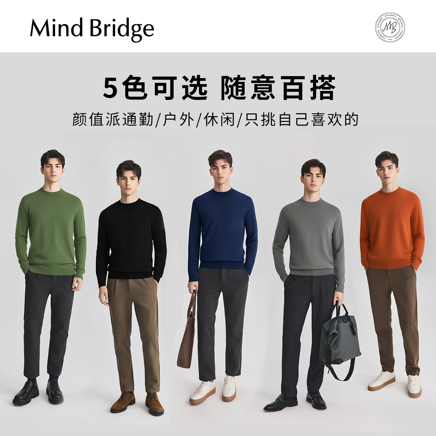 Mind Bridge【山羊绒】男士纯色圆领毛衣2025年秋拼接休闲针织衫