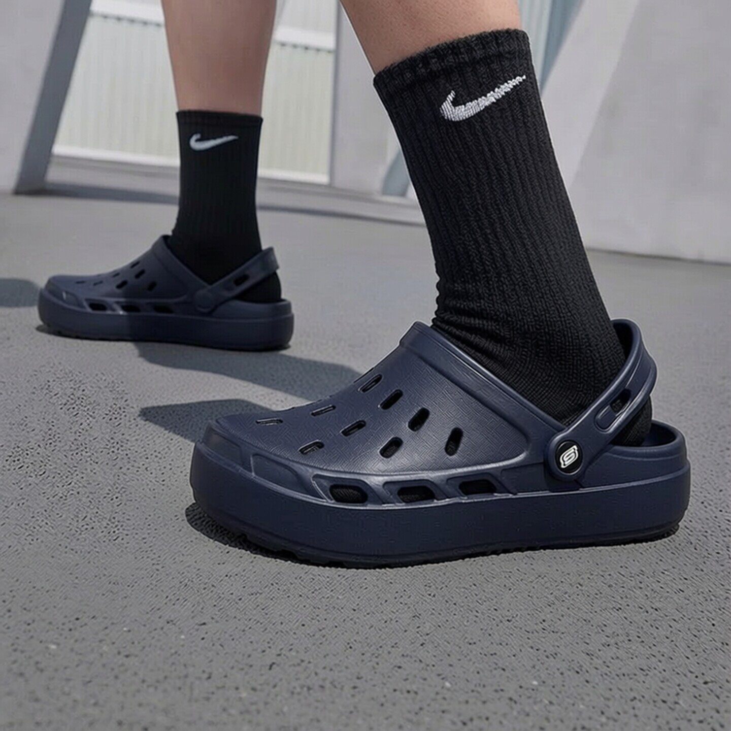 斯凯奇洞洞鞋运动凉鞋女鞋多巴胺拖鞋厚底增高轻便海边沙滩泡泡鞋