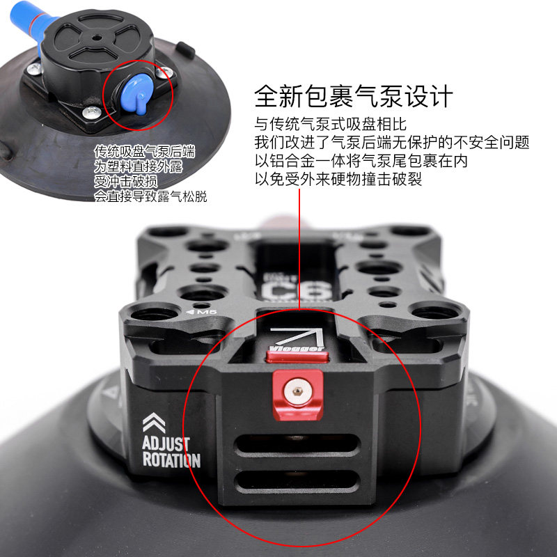 升级款C6战术多功能拓展抽真空吸盘手机相机汽车固定拍摄支架摄影
