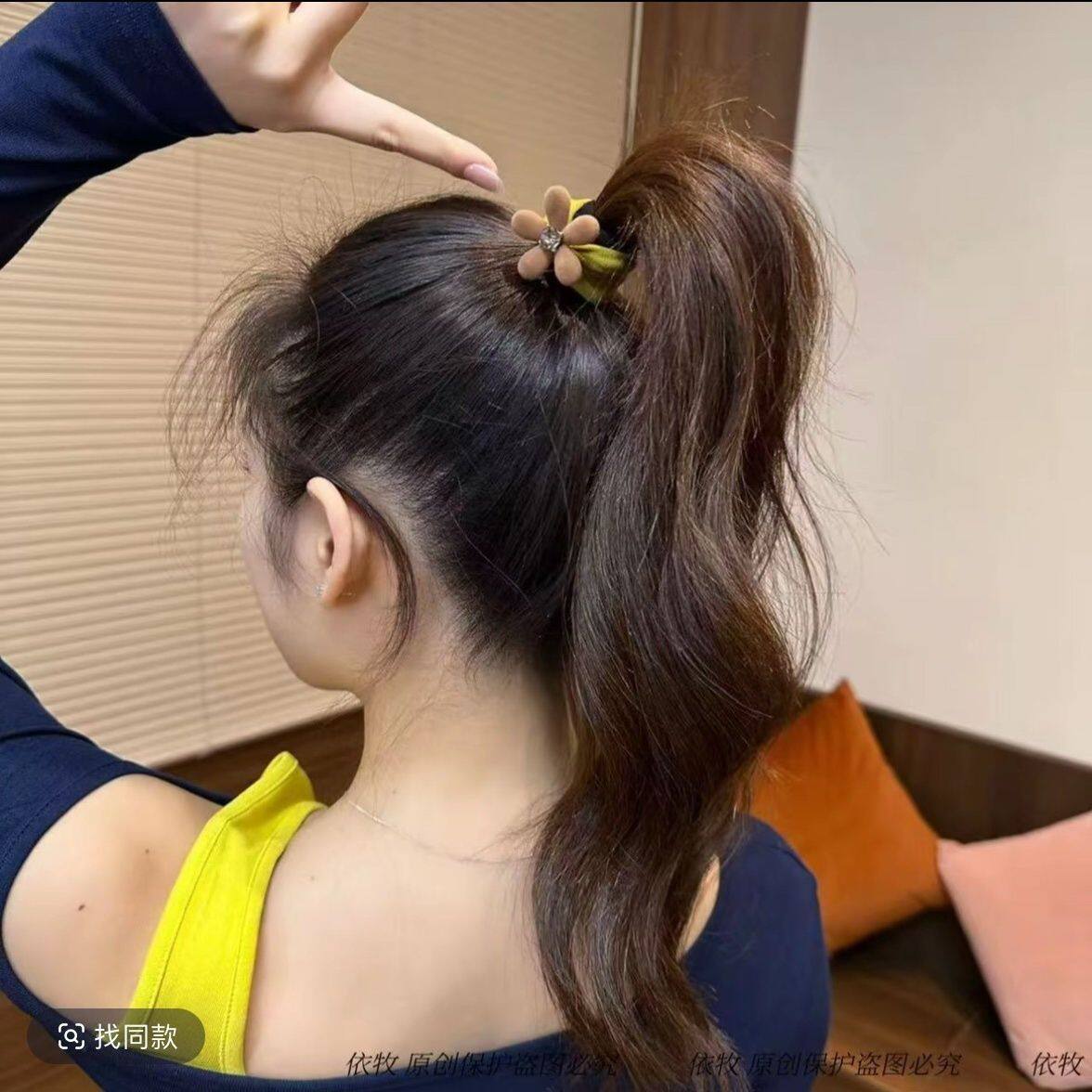 韩国新款植绒花朵发圈可爱甜美少女心发绳头绳发饰多巴胺洋气