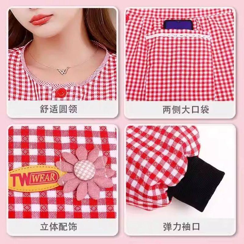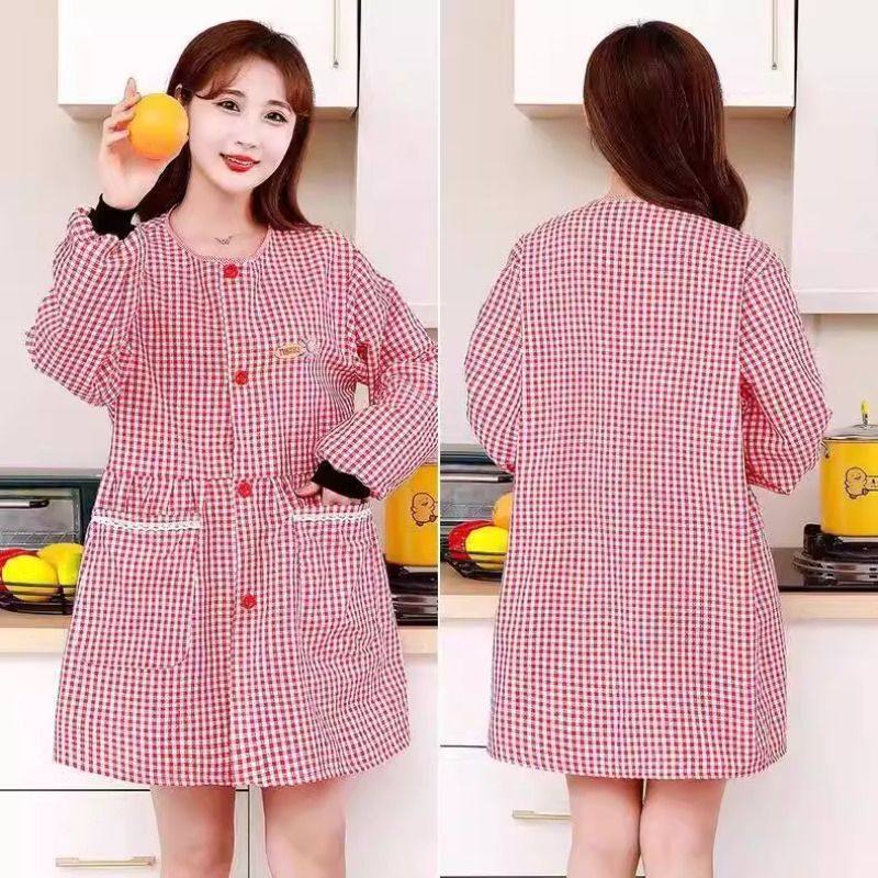 新款棉布耐磨围裙长袖厨房家用防污罩衣透气围腰做饭上班工作服女