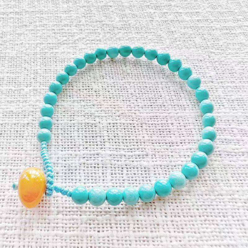 天然原矿绿松石手串盘玩女生蜜蜡手链小众高级感精致玉石新中式