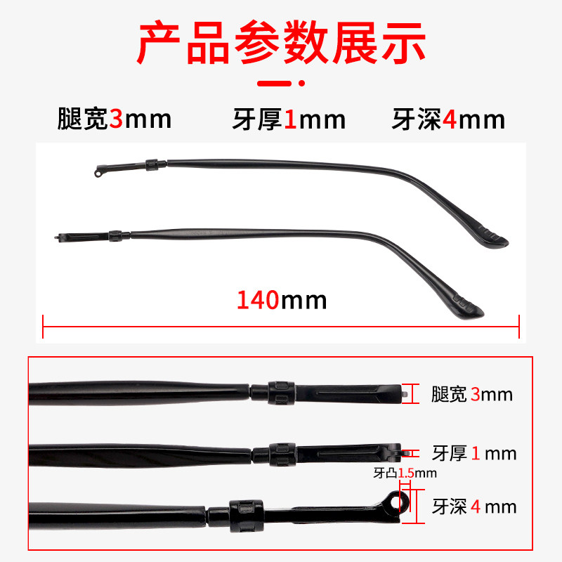 眼镜腿替换一对眼镜框镜架镜脚更换脚套透明全包单牙外牙凸牙配件
