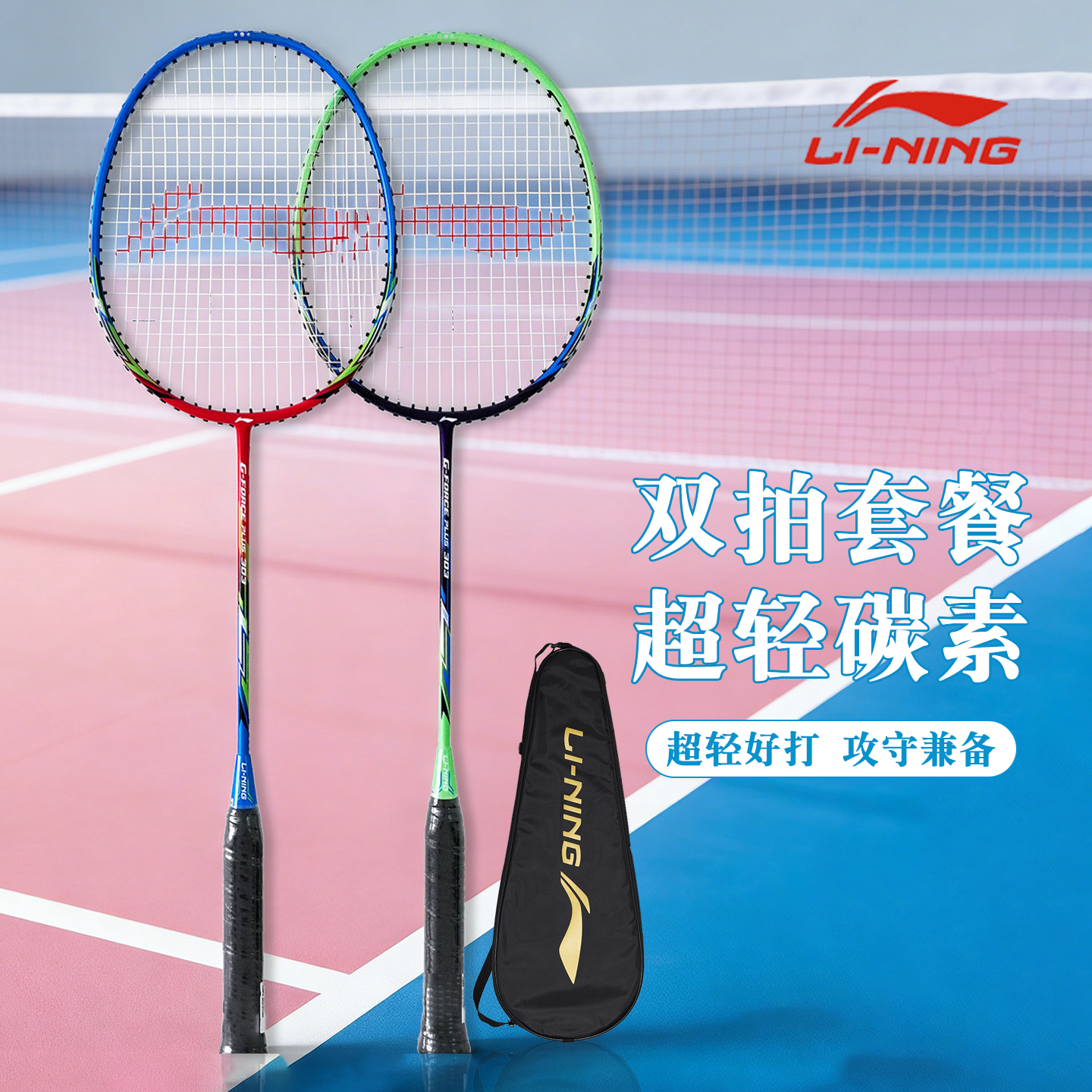 李宁羽毛球拍双拍套装成人亲子训练单碳素复合官方正品攻防兼备