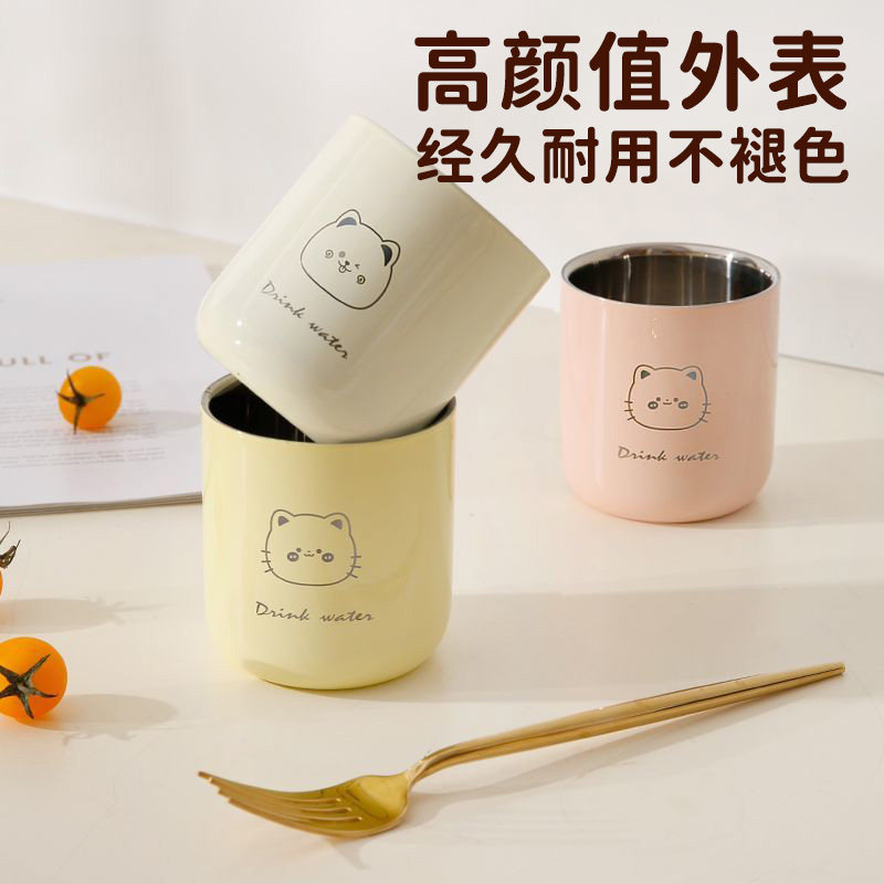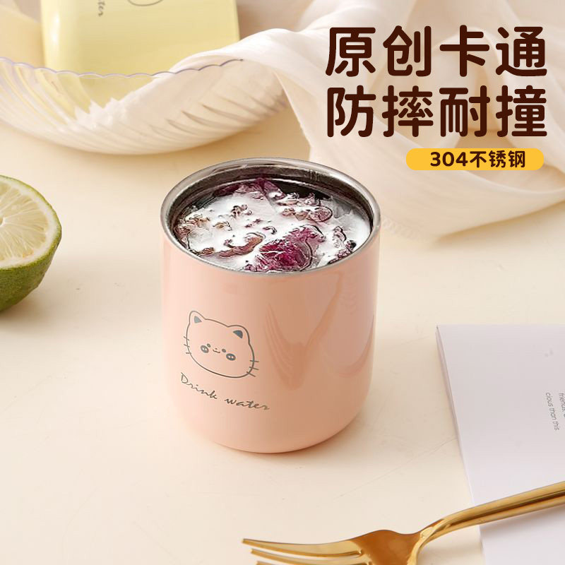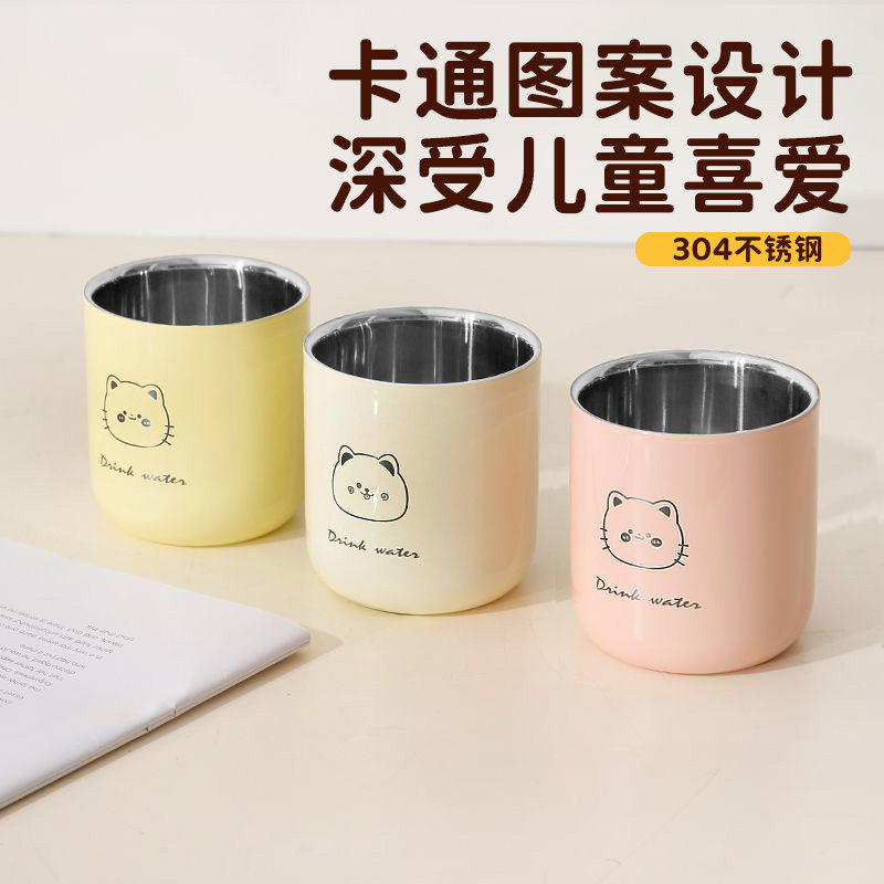 不锈钢杯子食品级儿童水杯家用幼儿园宝宝学饮杯304牛奶口杯防摔