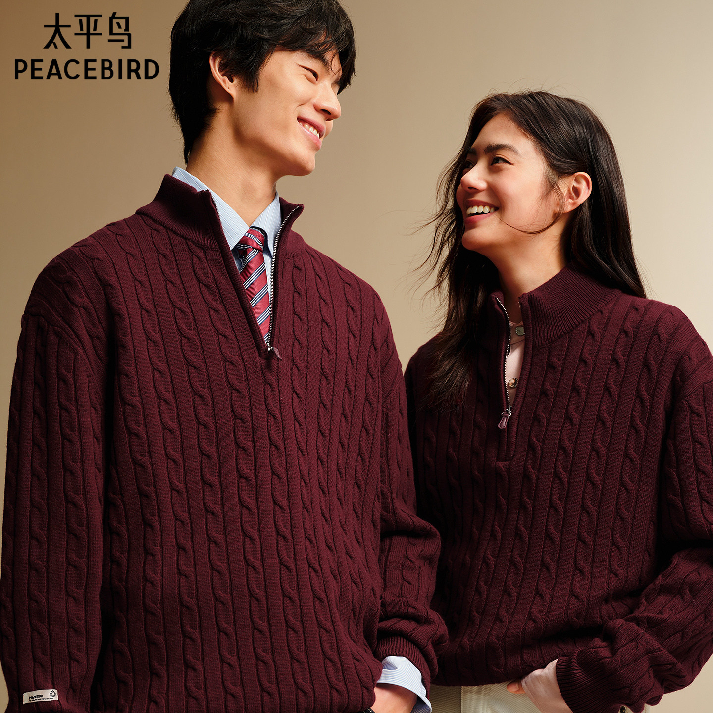 太平鸟男装 休闲毛衫26春时尚新款经典绞花半拉链含羊毛宽松毛衣