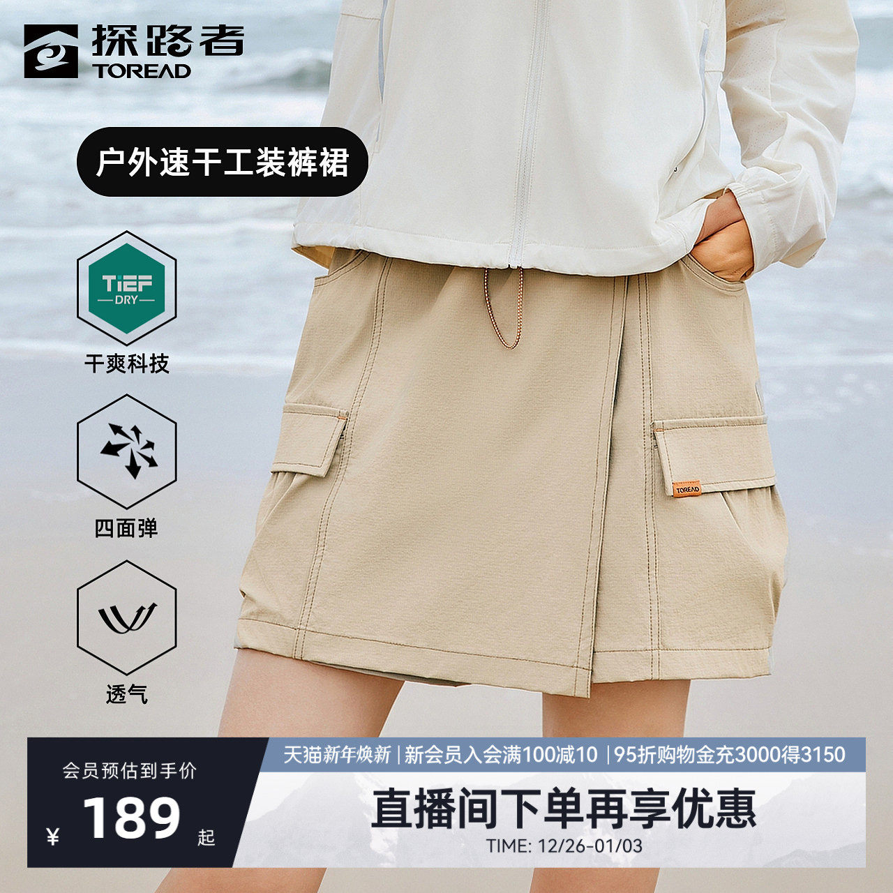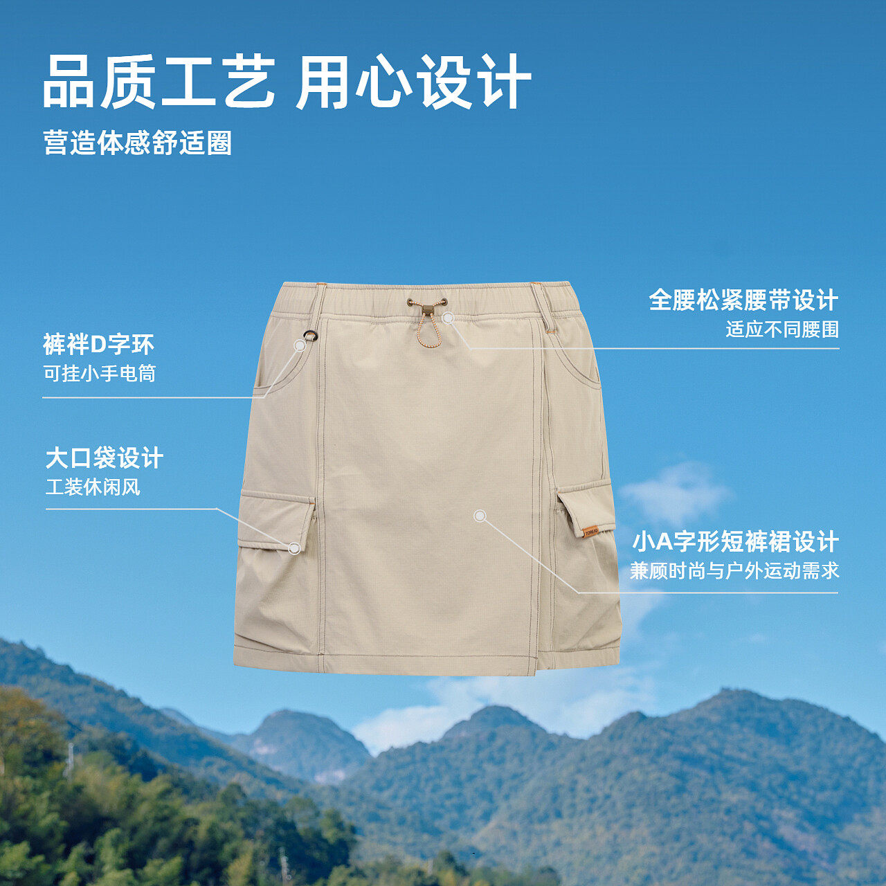 探路者速干裤女春夏季新款户外轻量高弹舒适透气工装休闲短裤裙