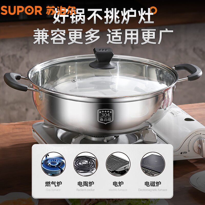 苏泊尔特厚304不锈钢火锅家用电磁炉汤锅火锅盆户外卡式炉专用火