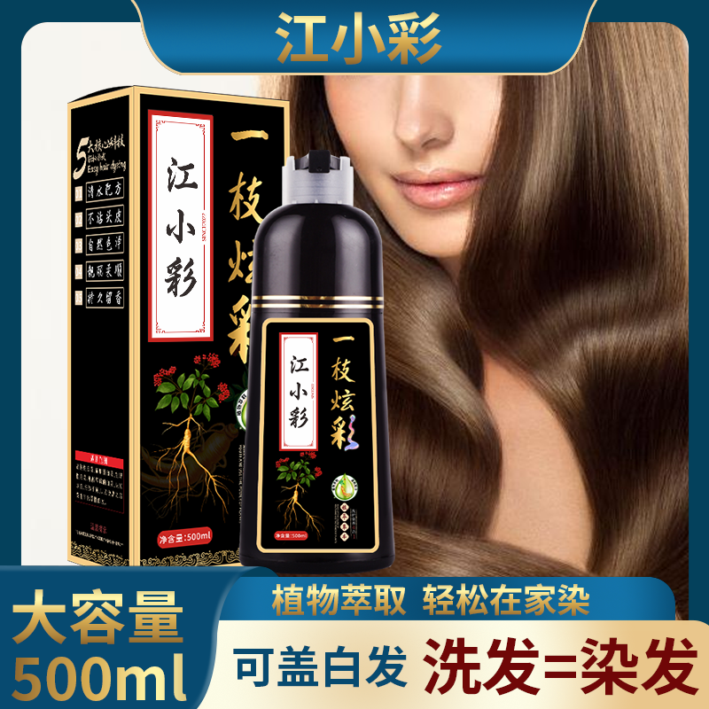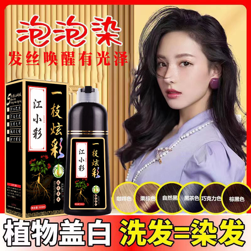 江小彩植物无刺激泡泡染男女养发膏不沾头皮染发黑色栗棕色盖白发