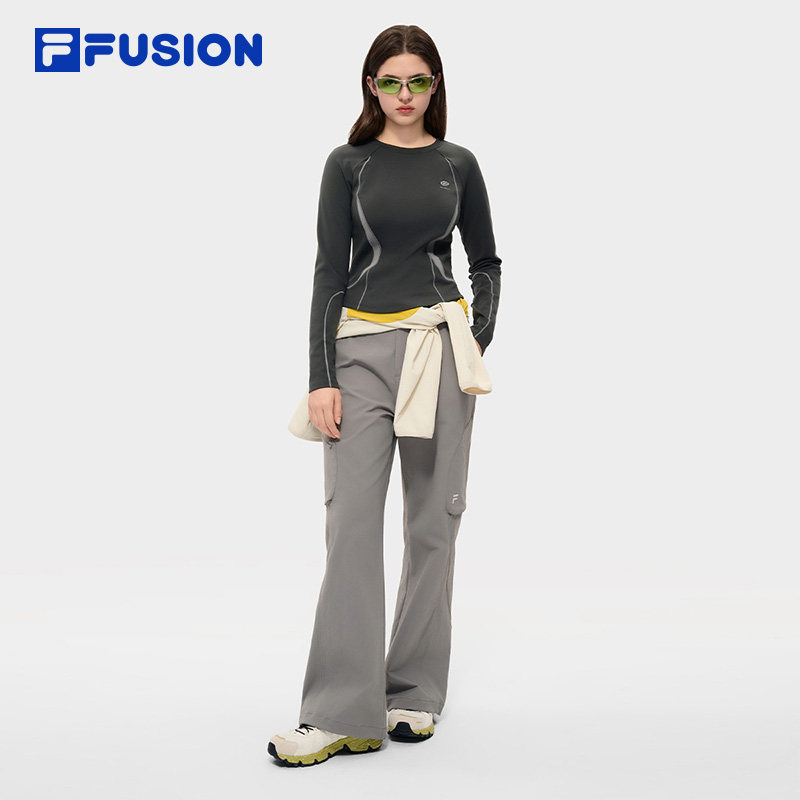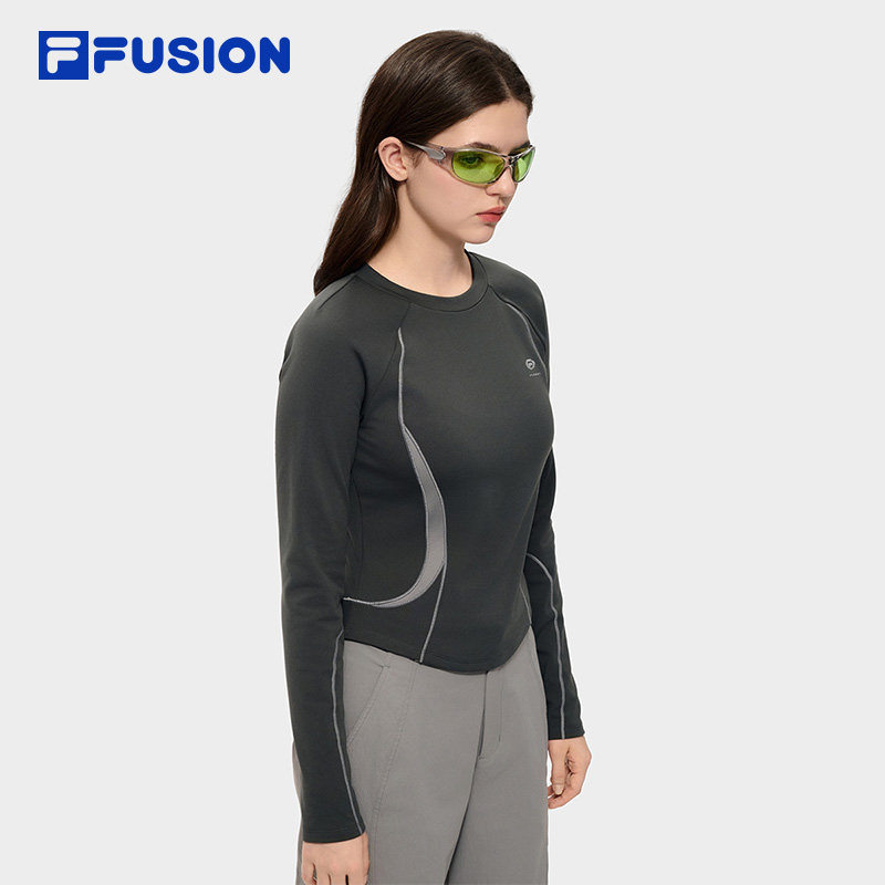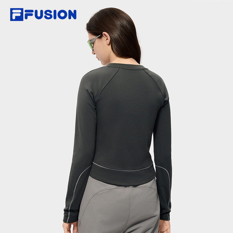 FILA FUSION斐乐潮牌女子针织长袖衫2026春季新款简约休闲修身长T