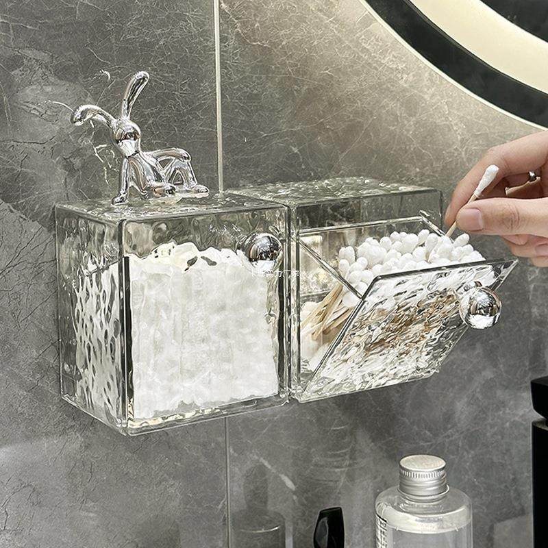 卫生间镜柜里收纳盒化妆棉洗脸巾整理盒壁挂透明棉签盒口红置物架