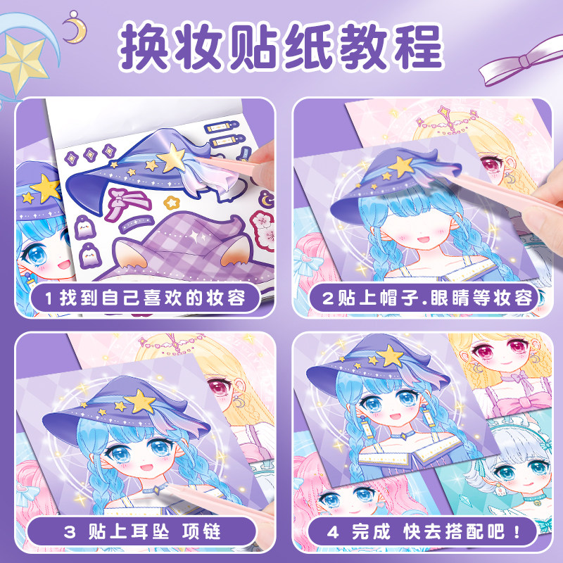 换装贴纸美丽公主化妆贴贴纸女孩儿童娃娃3到6岁以上益智玩具棉花娃娃贴纸本子卡通贴画diy手工粘贴纸贴纸书