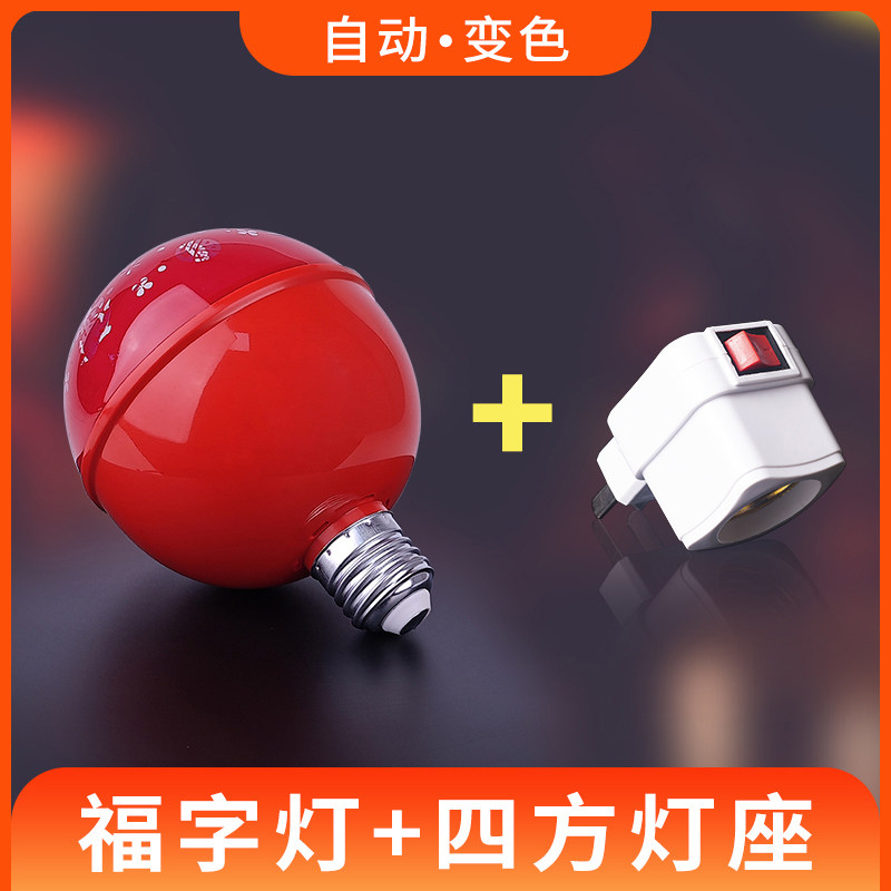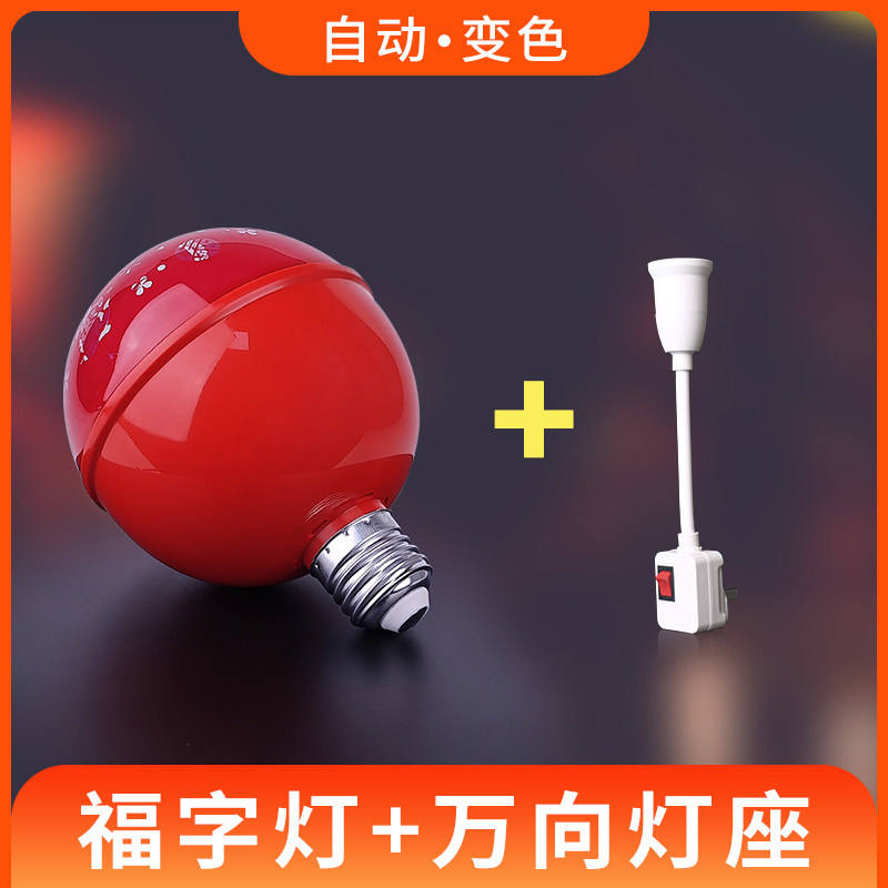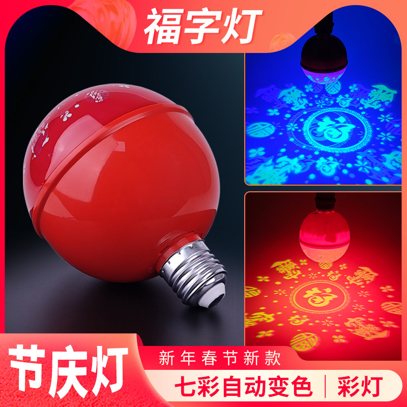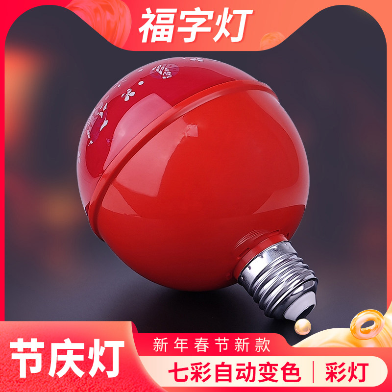 2026新款春节过年七彩福字灯泡彩灯氛围装饰灯变色旋转灯阳台新年