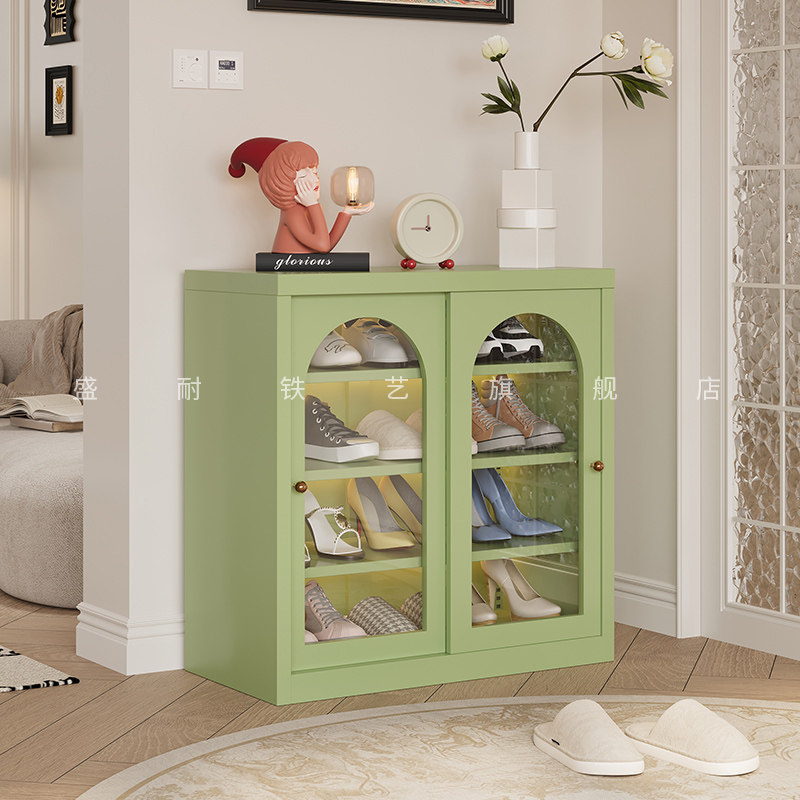 钢制鞋柜家用门口落地多层收纳入户玄关大容量推拉门金属防尘鞋架