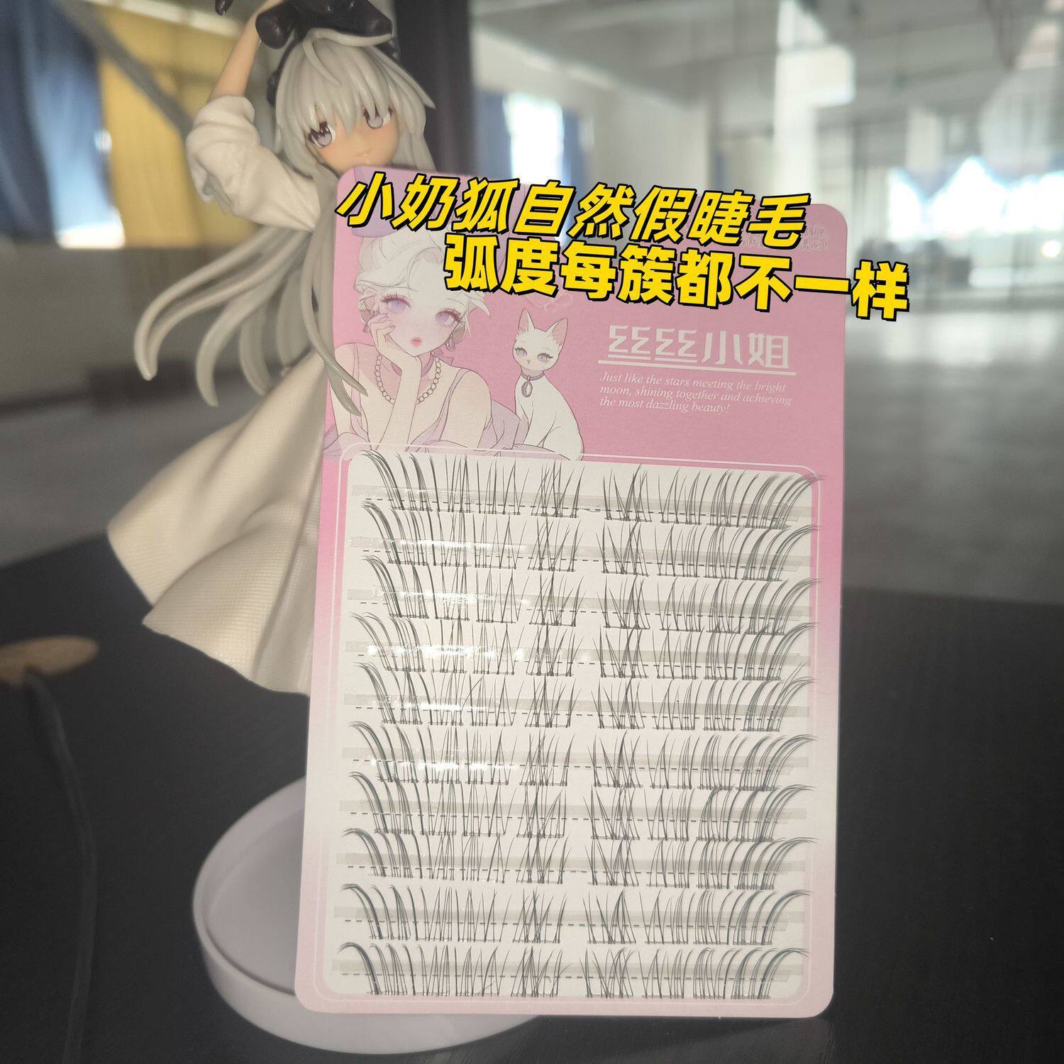 清冷感斜飞~超细软狐系假睫毛女自然太阳花仿真小白狐款胶水款