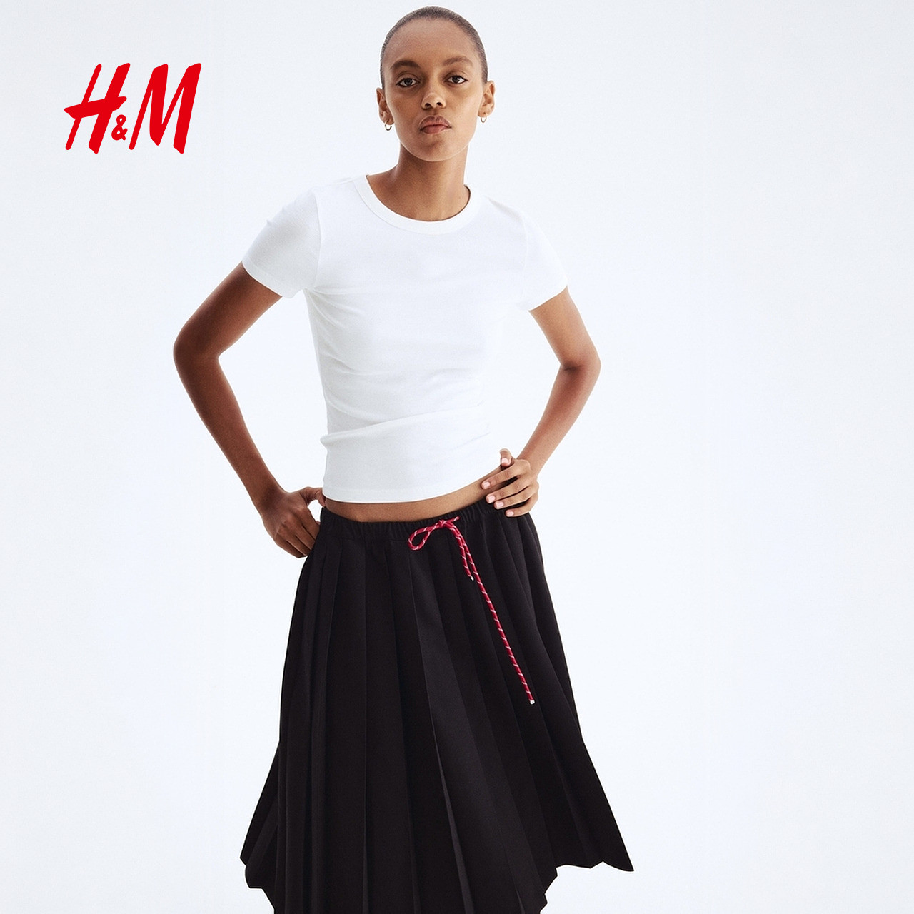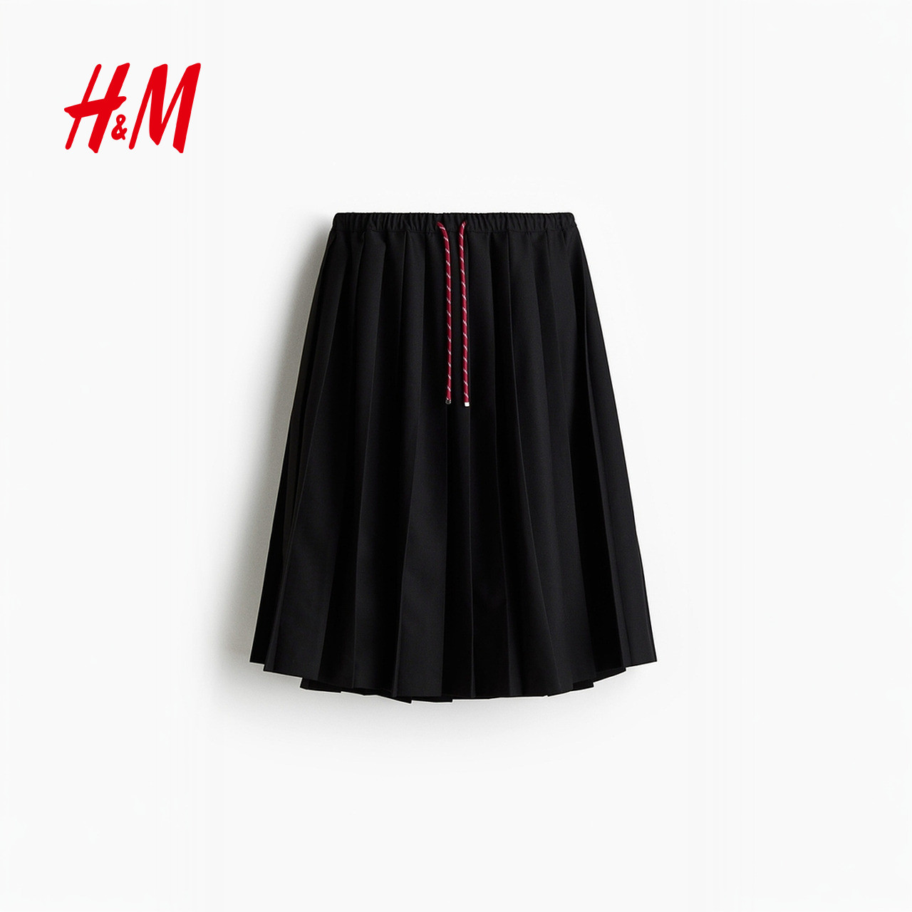 【博主推荐】HM女装半身裙A字喇叭形抽绳式褶裥休闲半裙1297472