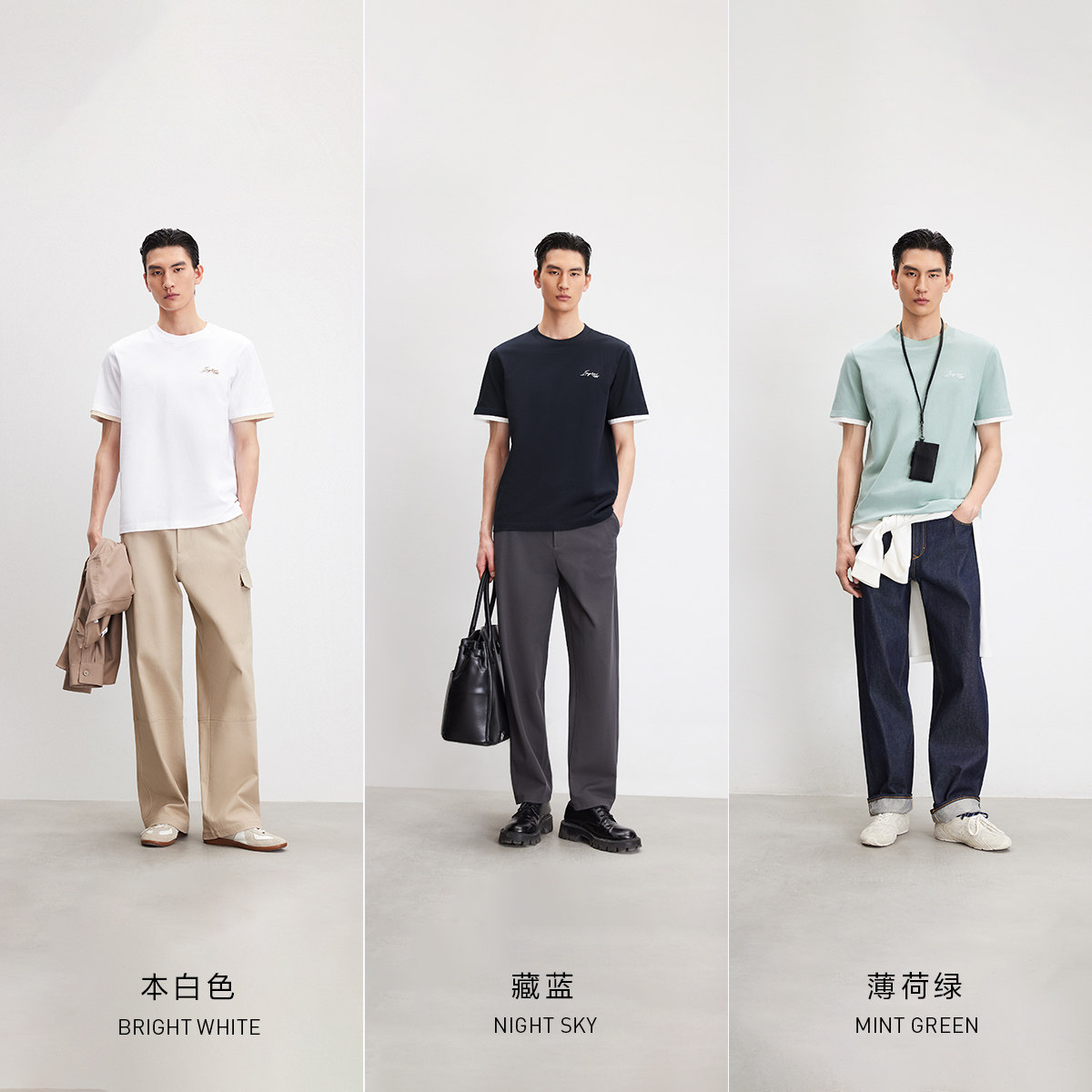 【春上新系列凉感】杰克琼斯男装新款纯色打底衫刺绣短袖男款T恤