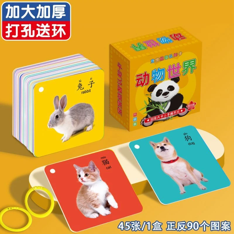 宝宝认知卡片0-3岁看图识认物早教卡动物卡片幼儿益智五官数字书