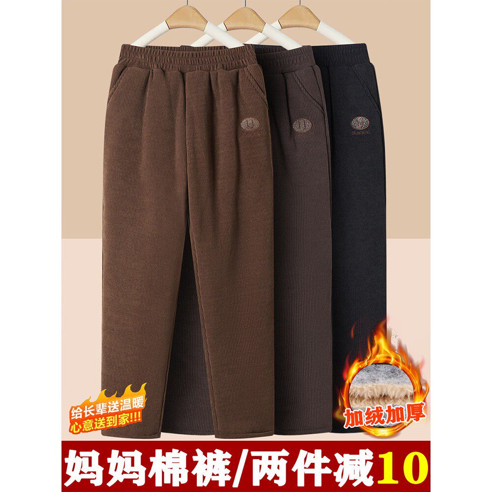灯芯绒妈妈冬季棉裤外穿加绒加厚裤子女秋冬中老年人奶奶宽松大码