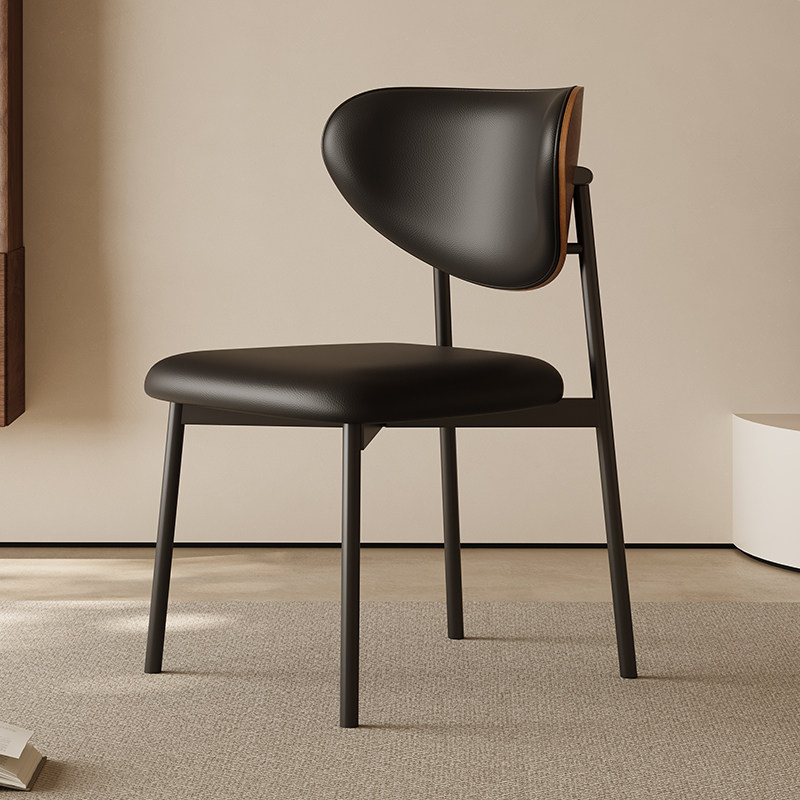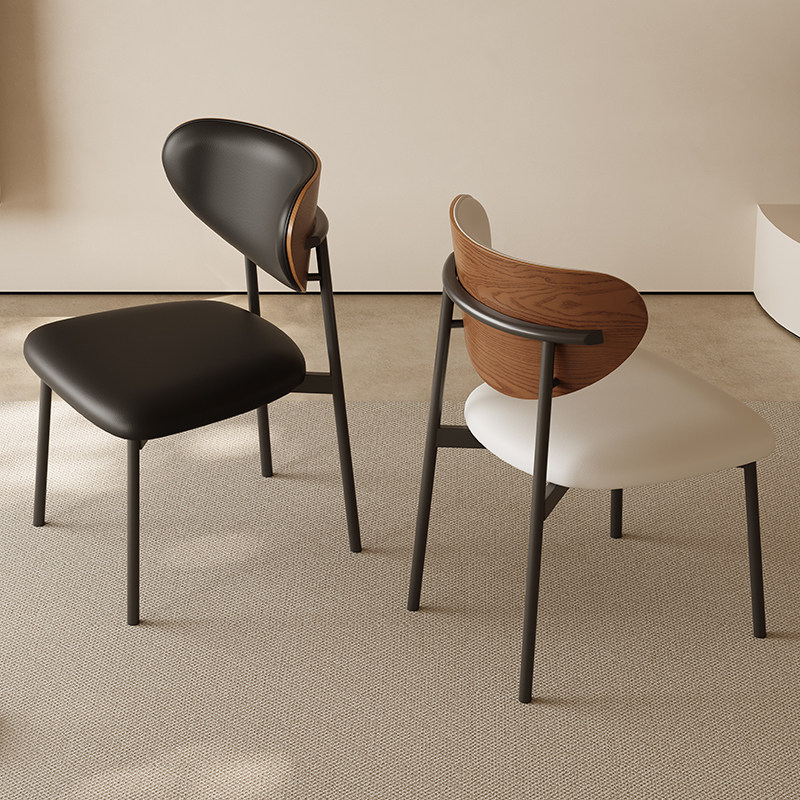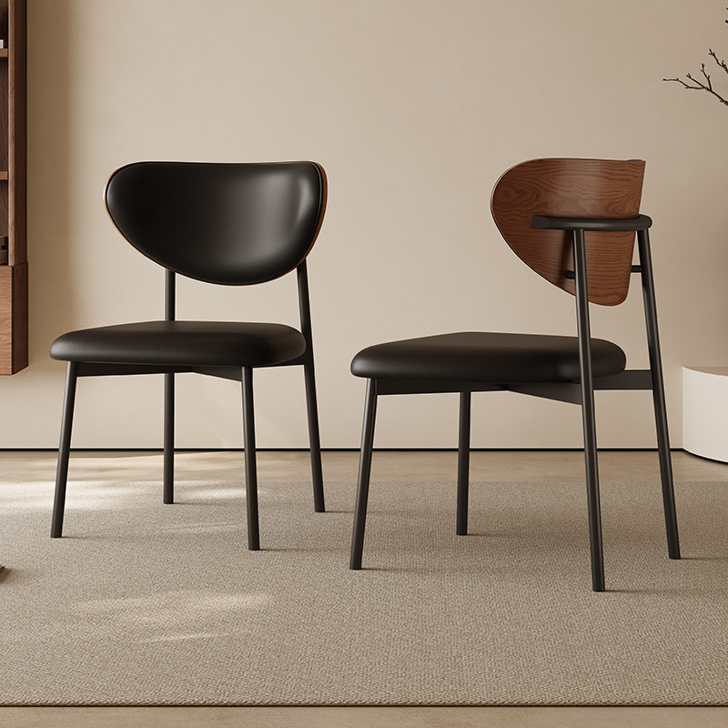轻奢侘寂风餐椅皮软包设计师现代弯曲木咖啡厅实木椅子家用书房椅