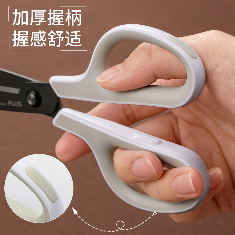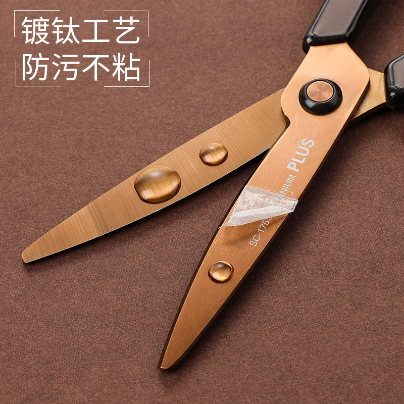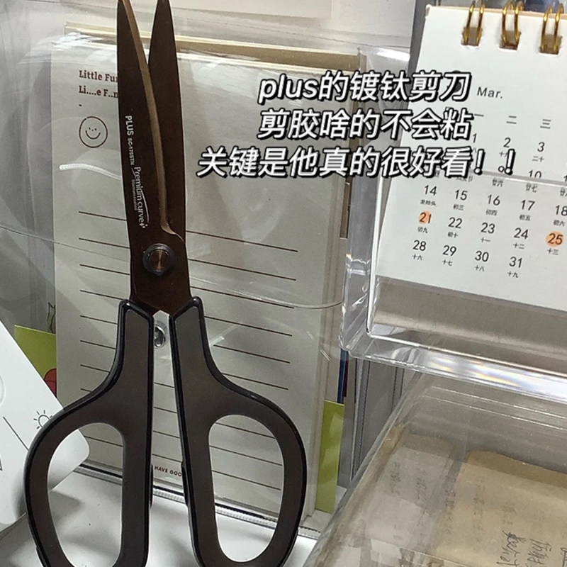 日本PLUS普乐士剪刀办公家用镀钛涂氟省力剪子厨房不锈钢不粘胶学生手工便携小号裁缝剪拆快递剪刀