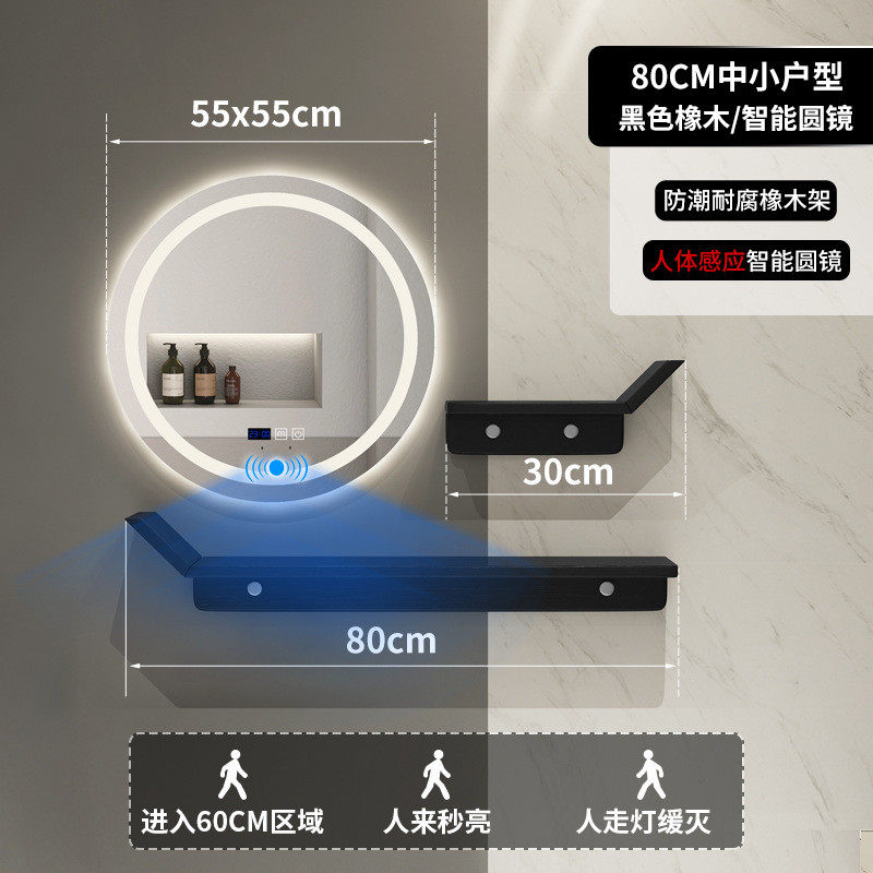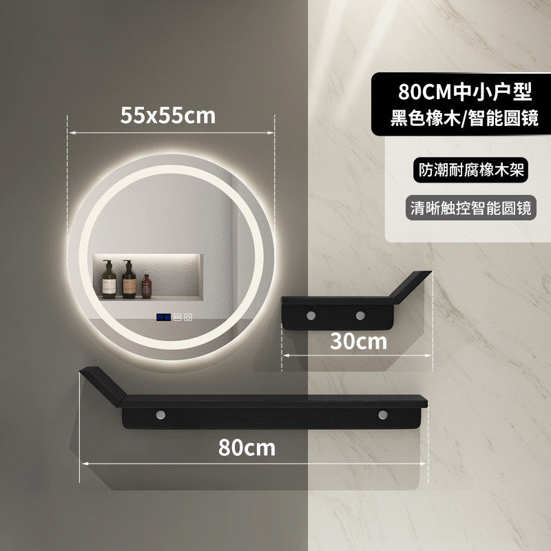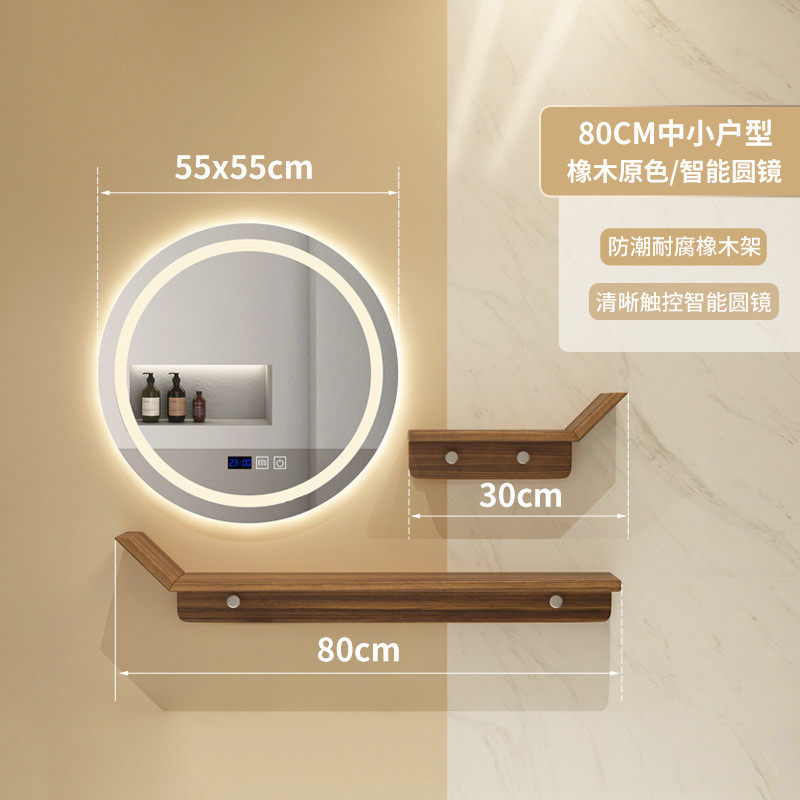 alj6led灯镜子圆形浴室镜带置物架洗手间智能镜除雾智能镜镜柜
