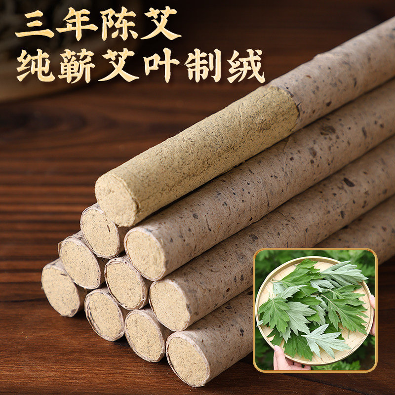 手工艾草条桑皮纸艾柱纯艾正品艾灸盒树叶纸艾条高比例纯艾绒