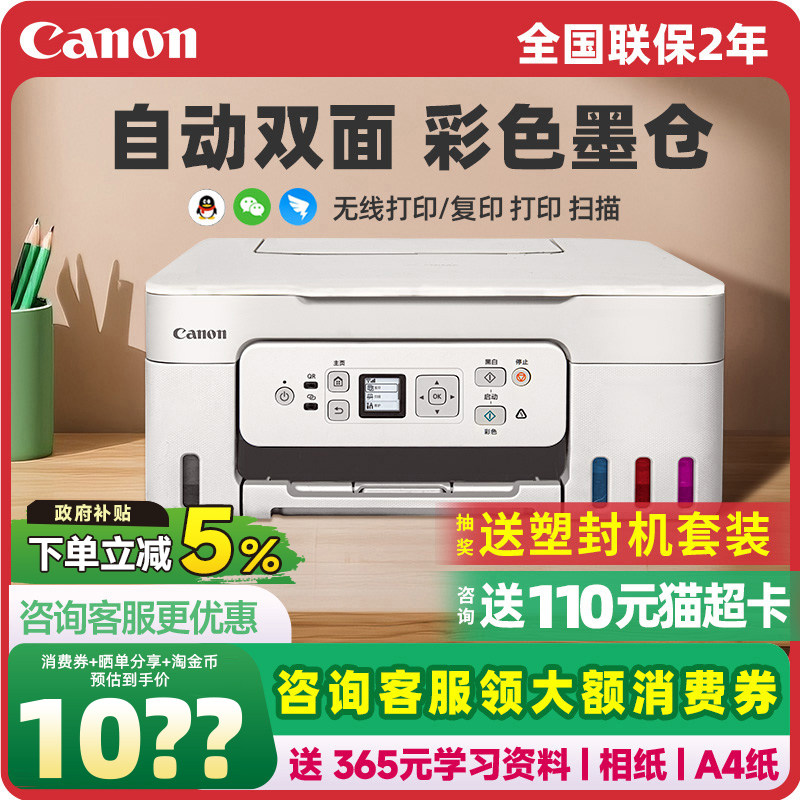 佳能G3881自动双面彩色打印机家用小型复印扫描多功能一体机可连手机无线办公专用照片a4 政府补贴3880