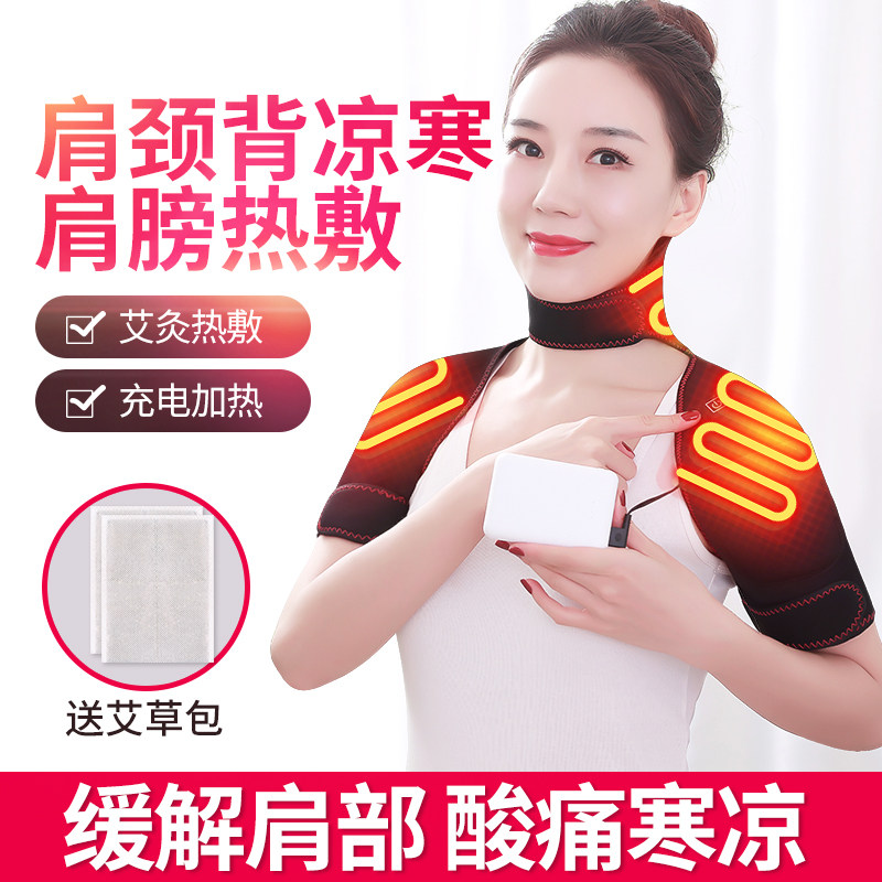 艾草电加热仪艾灸颈背发热包颈椎披肩理疗神器按摩电热热敷护肩背