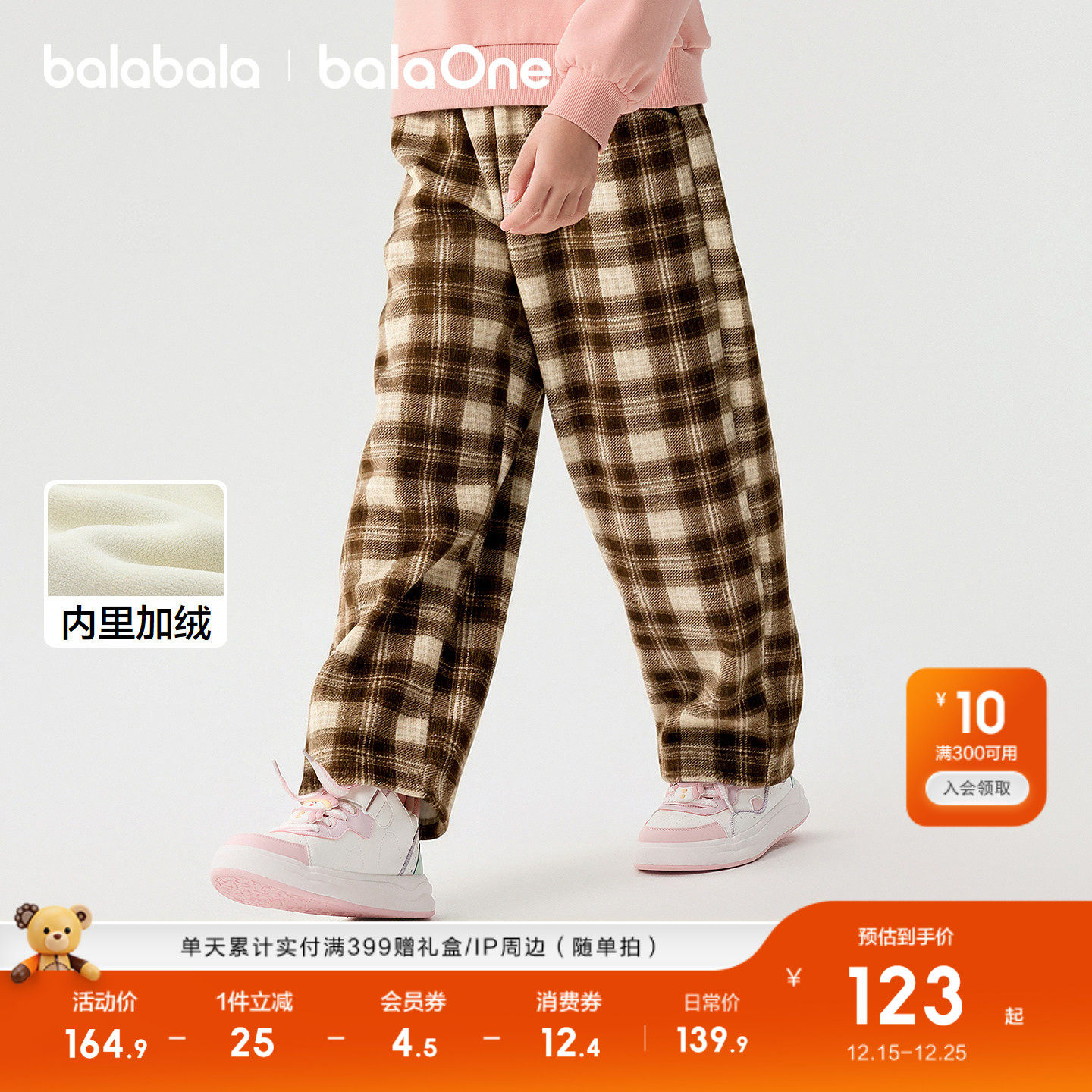 【balaOne】巴拉巴拉童装女童加绒直筒儿童裤子2025冬装新款复古