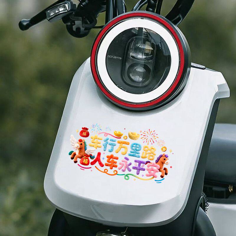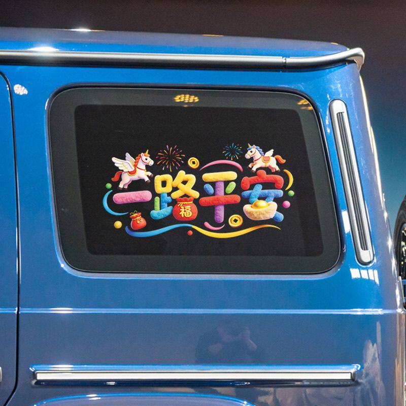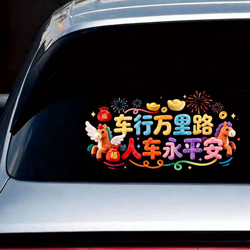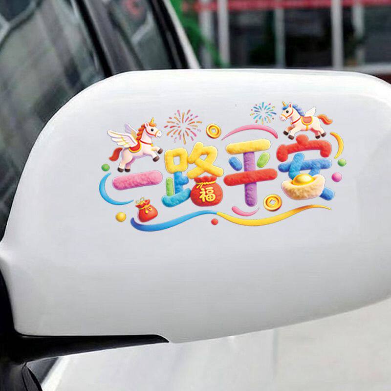 2026马年裸眼5D立体毛绒静电汽车贴纸车用春节一路平安福字装饰贴